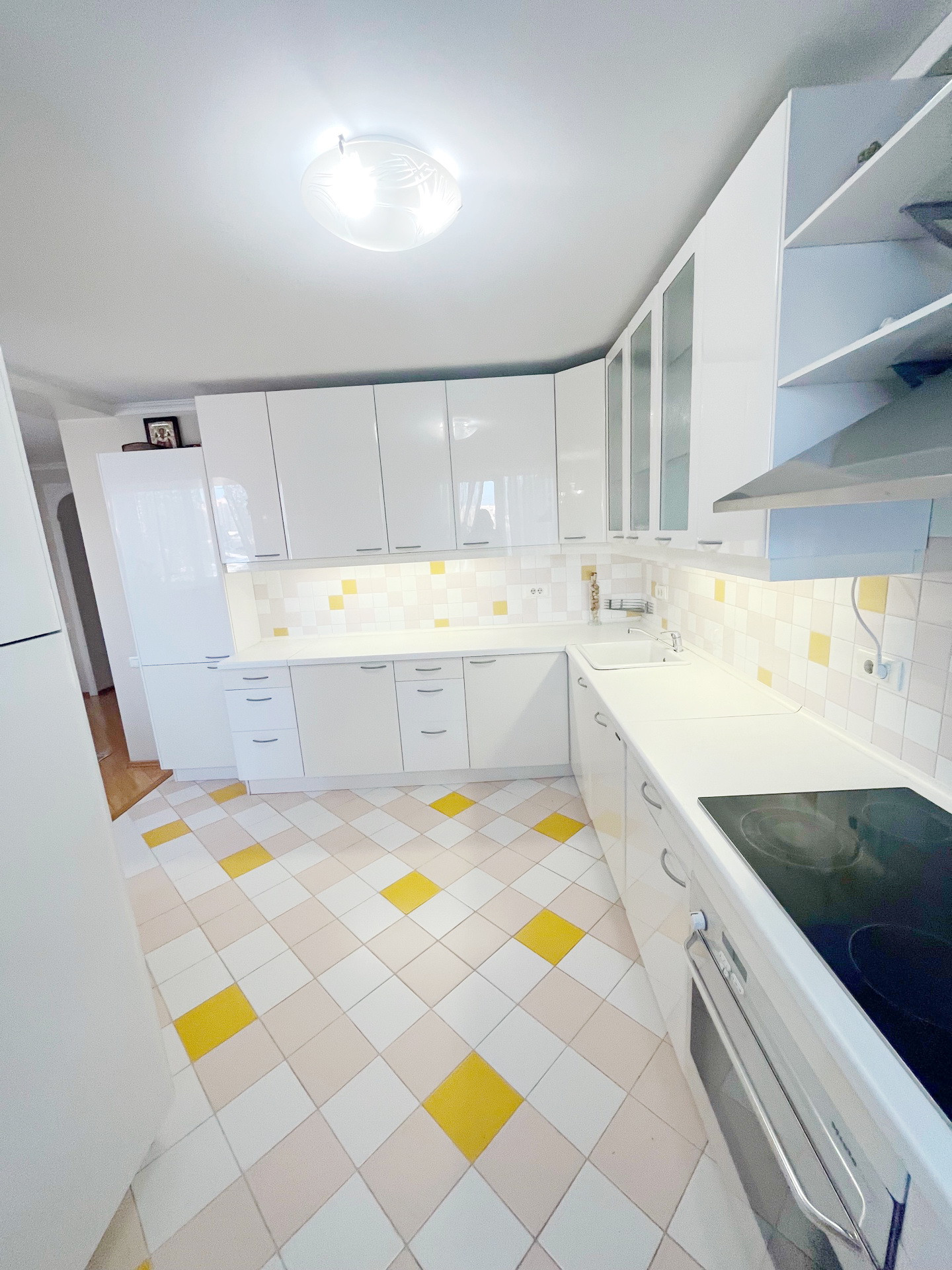 Просторная Кухня-столовая мечта любой хозяйки.Кухонный гарнитур в светлых тонах,вся техника встроенная фирмы Miele(посудомоечная машина,духовой шкаф,варочная панель,холодильник).Также имеется отдельная прачечная со стиральной и сушильной машиной фирмы Miele.