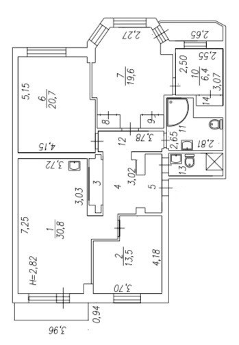 Высота потолков 3 м