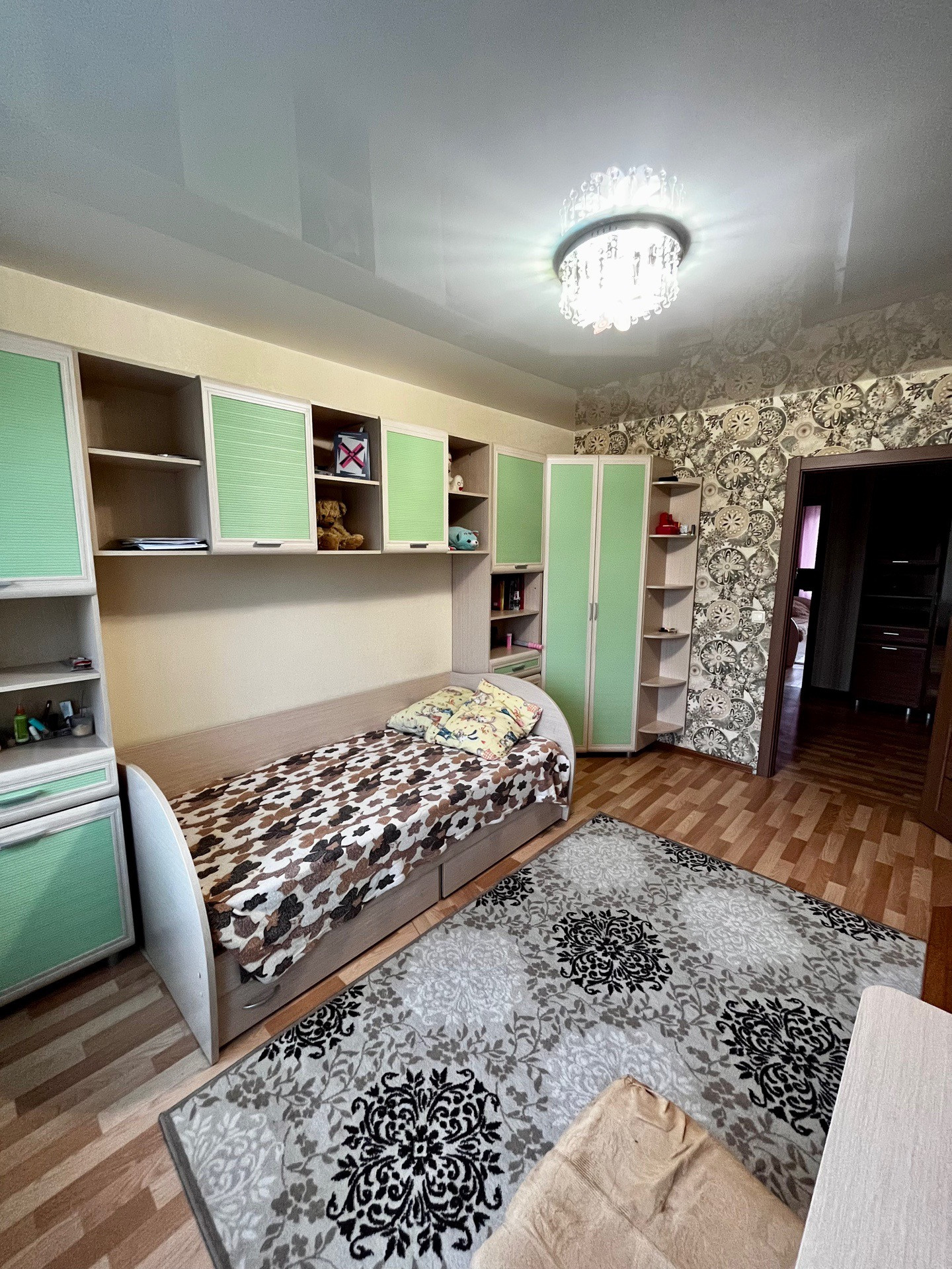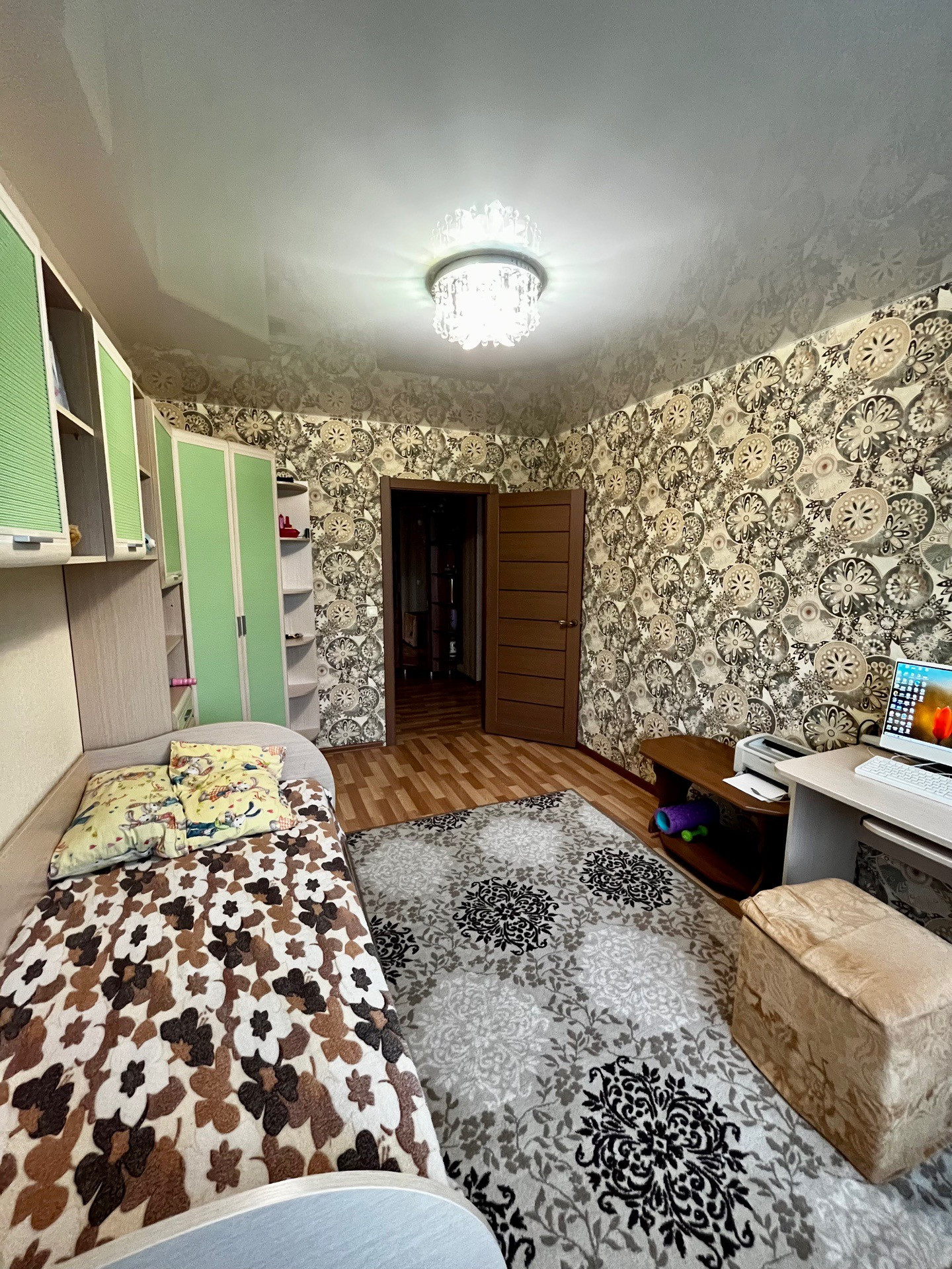 Имеется балкон и просторная лоджия. Наливные полы, хорошие межкомнатные и входная двери, натяжной потолок.