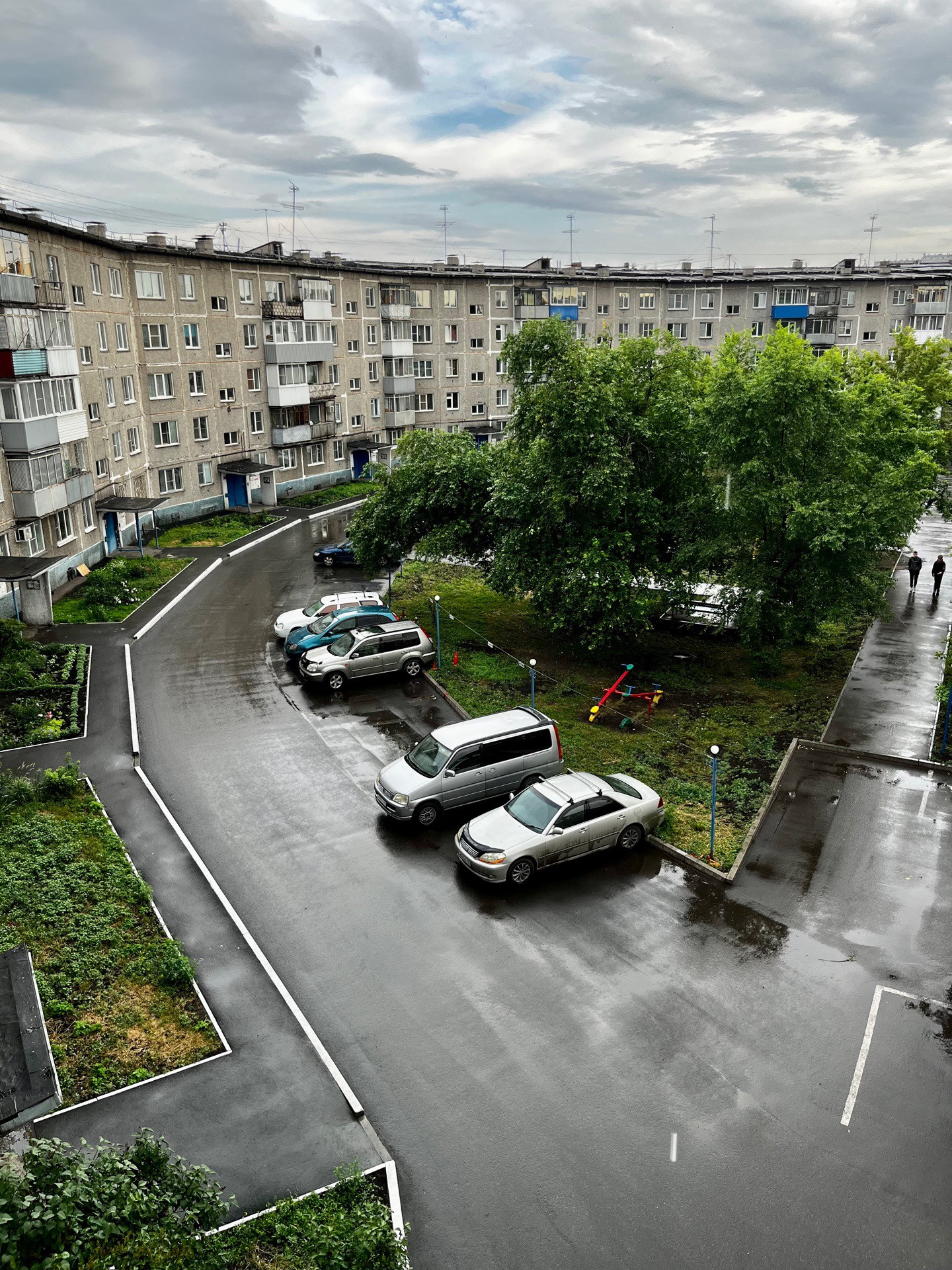 Хороший освещенный двор с детскими площадками и игровыми зонами. Весь двор и парковочные места находятся под видеонаблюдением.