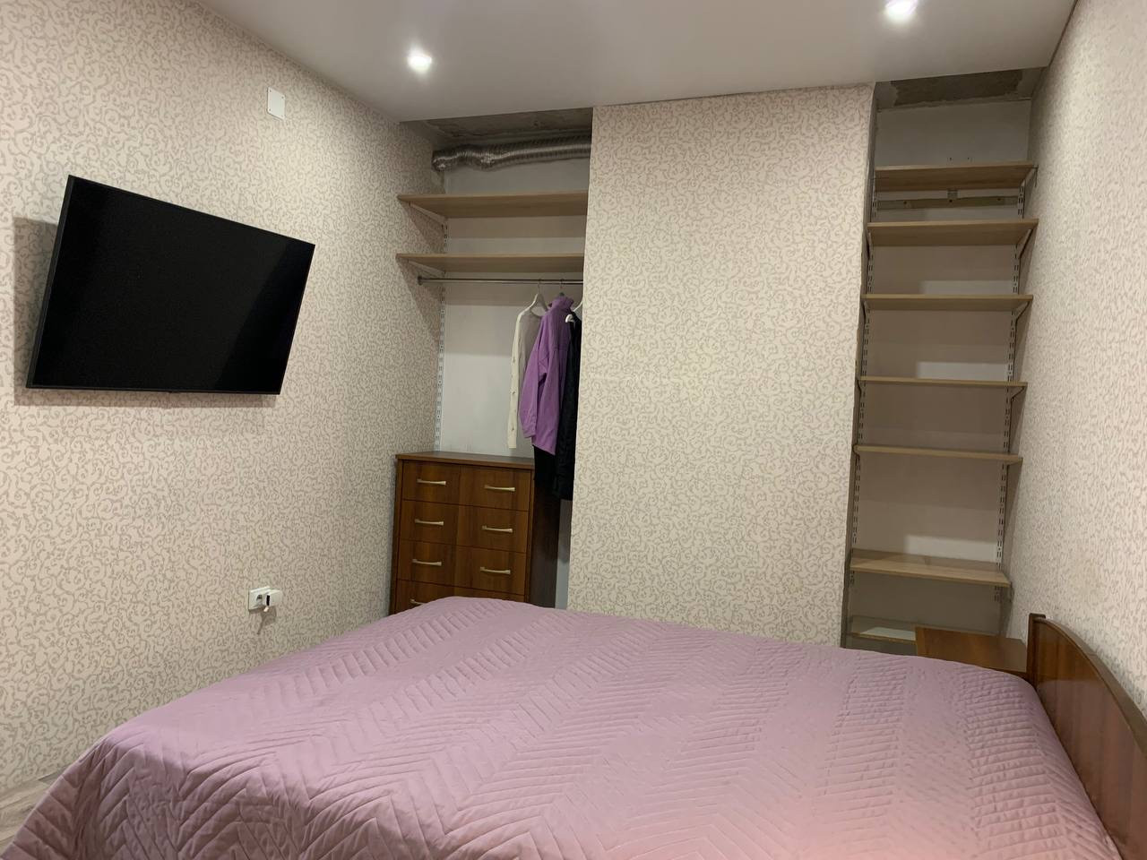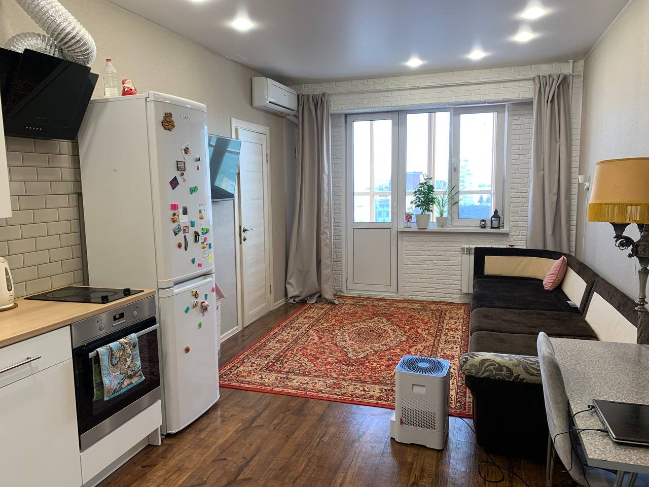 Евродвушка (спальня + гостиная с кухней). В доме консьерж, видеонаблюдение, 2 шлагбаума, 4 лифта. В санузле керамогранит, сантехника, джакузи. Панорамный балкон 10 квадратов, с видом на город.
