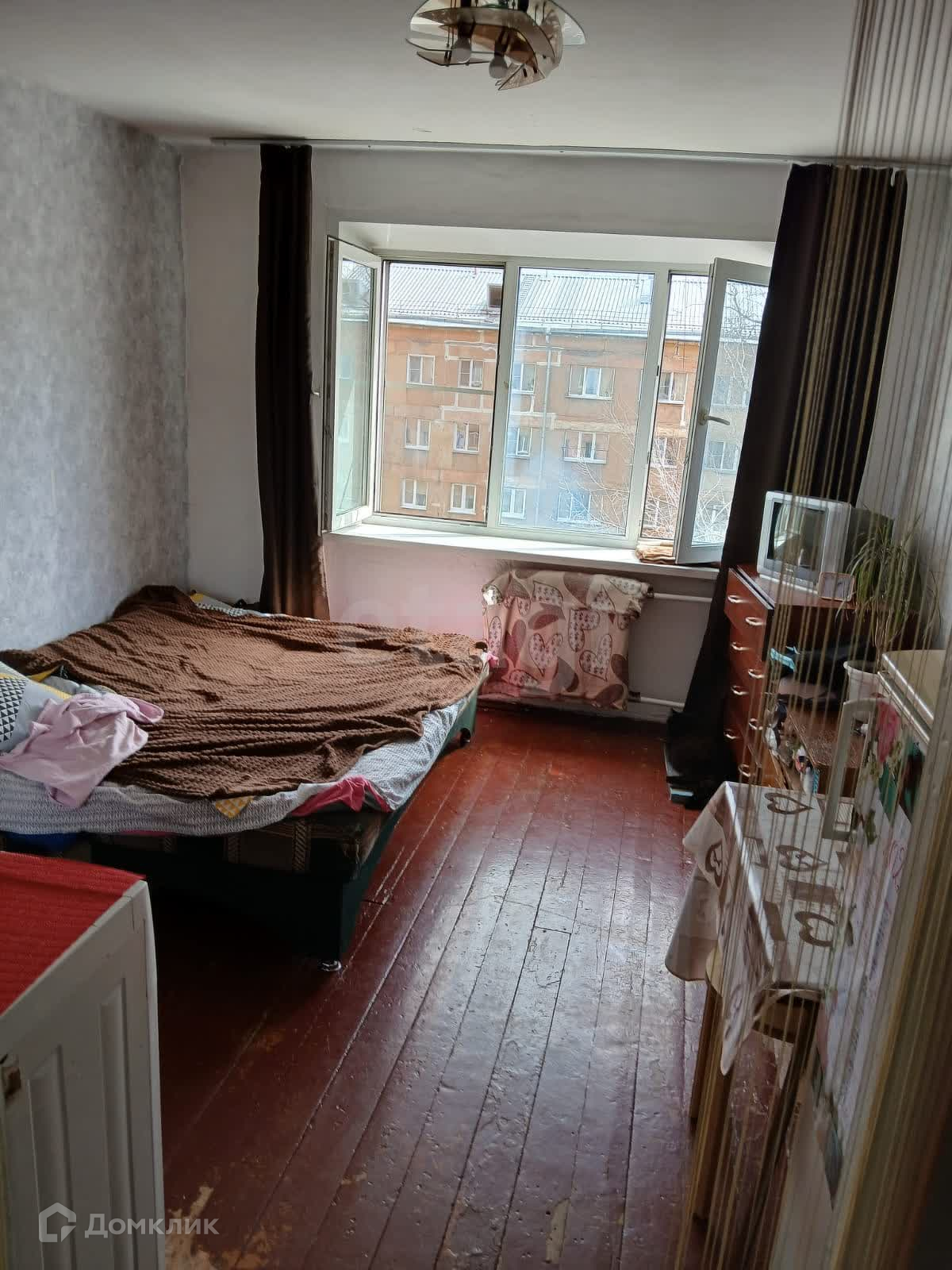 Квартира ухоженная: установлено пластиковое окно, пол покрашен, на стенах обои.