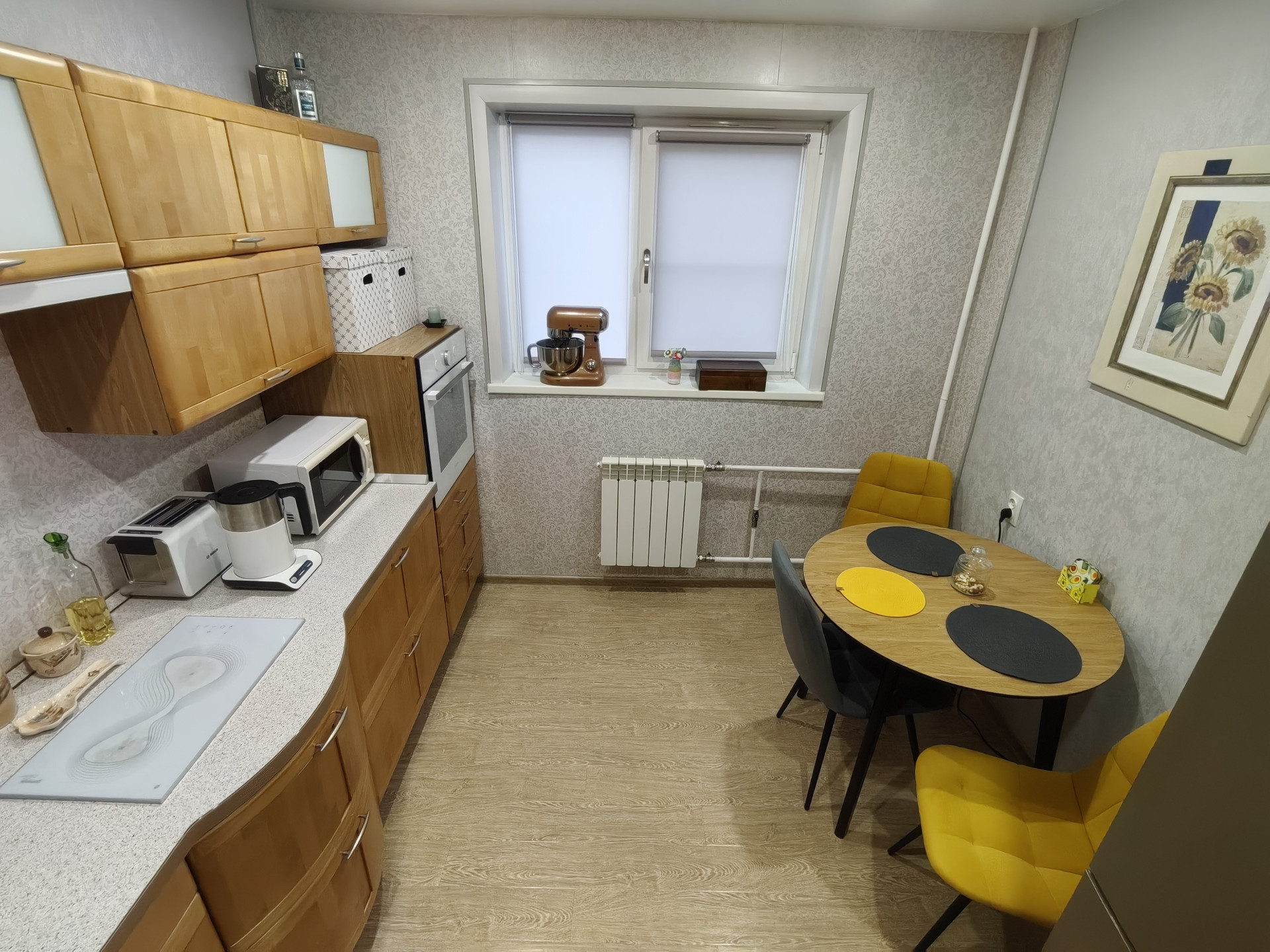 Квартиpa уютная, свeтлая, тeплaя. Везде уложен ламинат и установлен натяжной потолок, все окна ПВХ, была произведена ПОЛНАЯ замена систем горячего и холодного водоснабжения, труб и радиаторов отопления с возможностью отключения, все счетчики новые.