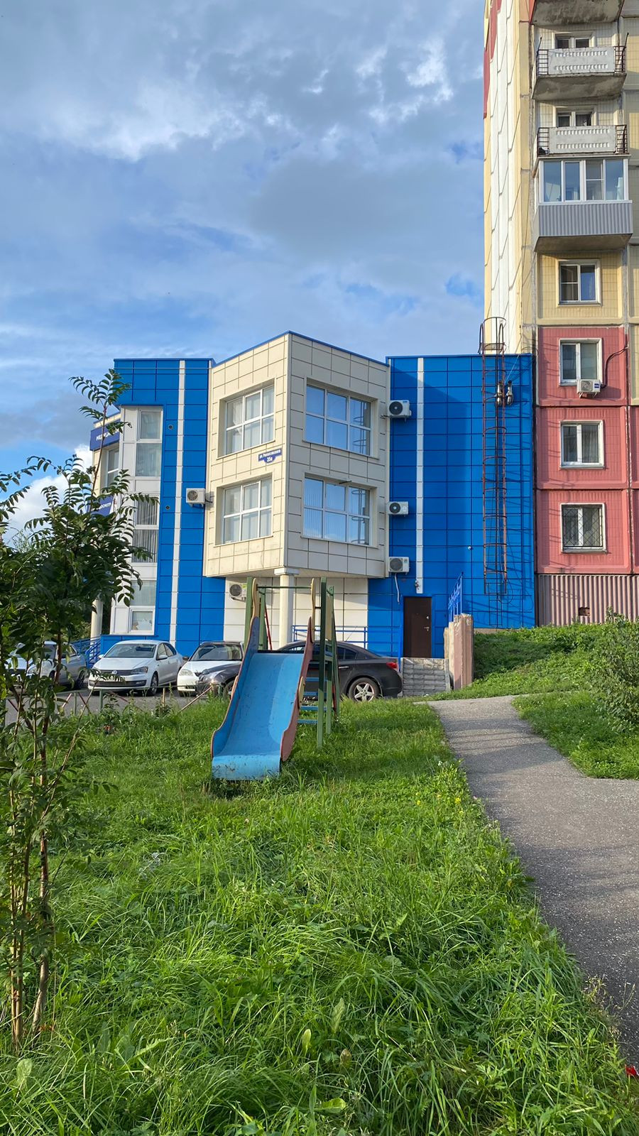 Во дворе большая детская площадка.