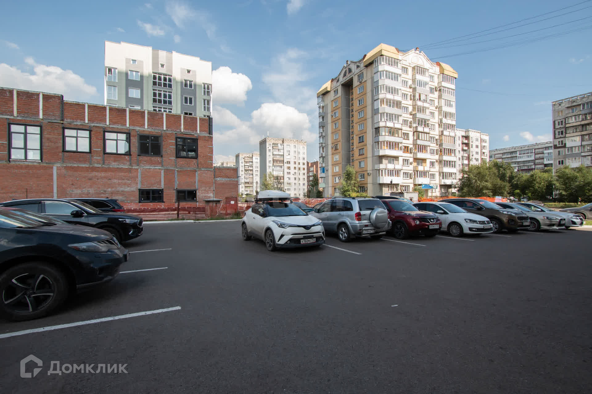 Закрытая территория жилого комплекса, шлагбаум.