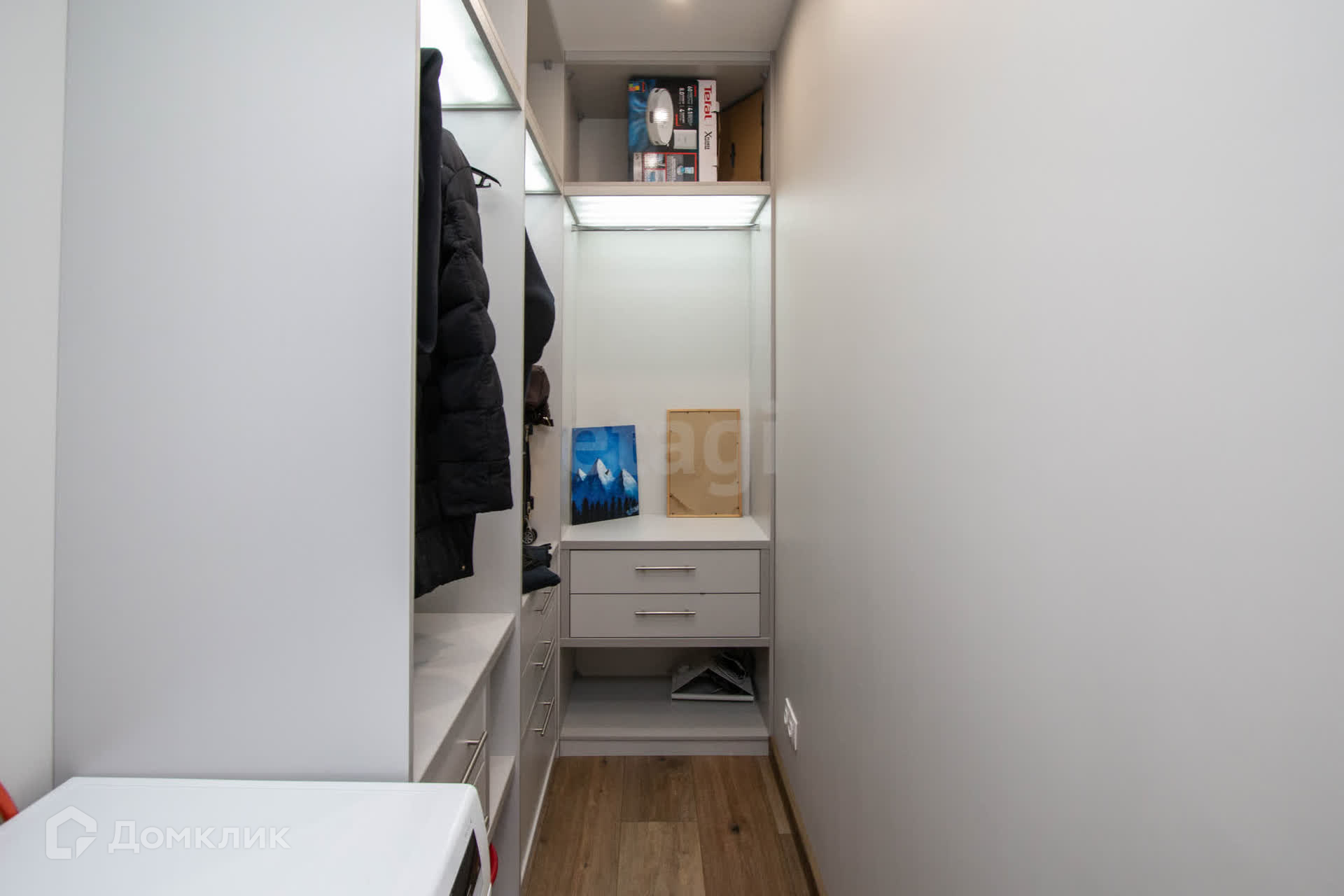 Система хранения продумана до мелочей: гардеробная на входе, в комнате и в детской заставят забыть о вопросе хранения вещей.