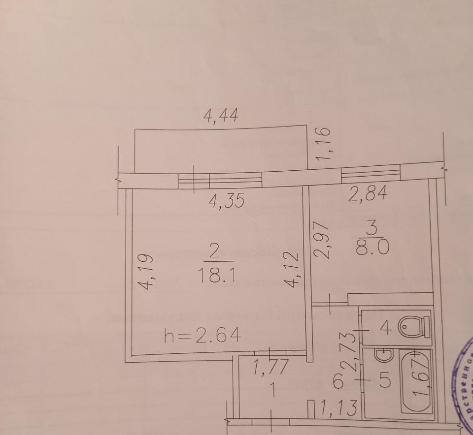 Балкон, лоджия 1 балкон