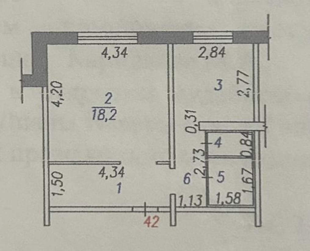 Жилая площадь 18.2 м2