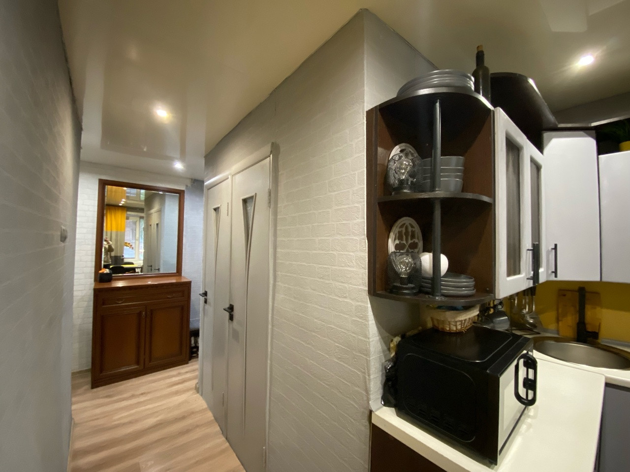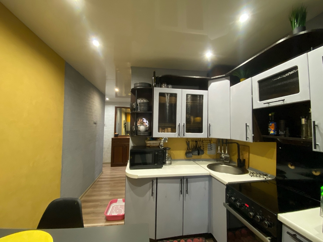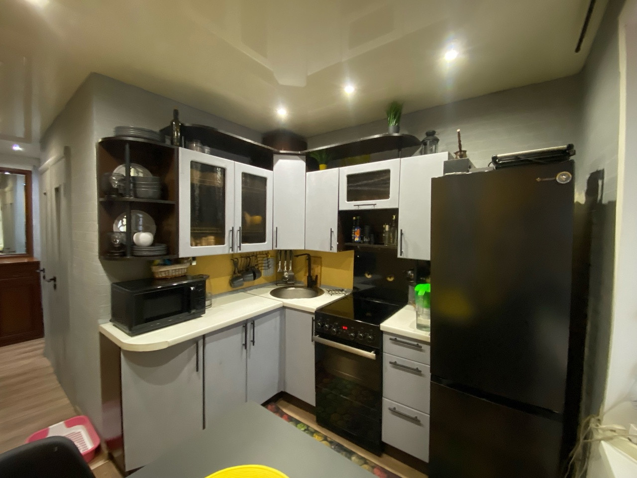 Кваpтирa в хорошем cоcтоянии, сделан хороший ремонт, заменены все коммуникации, установлены пластиковые стеклопакеты (летний холодильник на кухне обшит пластиком, чтоб от него не было холода). Стены, потолки, полы ровные, в квартире тепло!