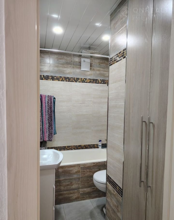 Эстетически оформленный санузел с качественной сантехникой.