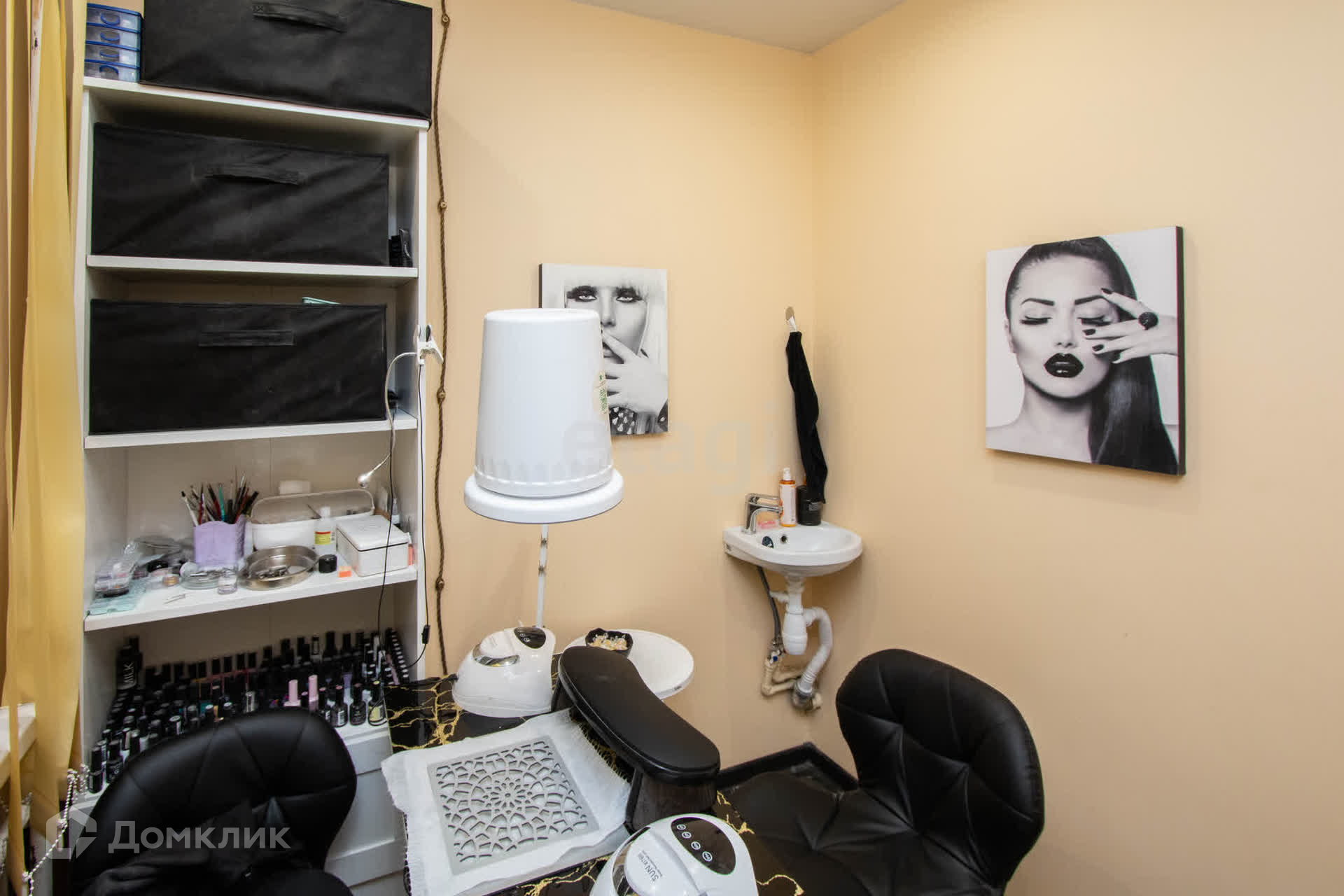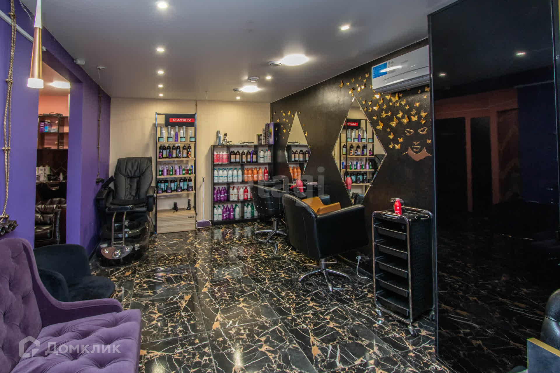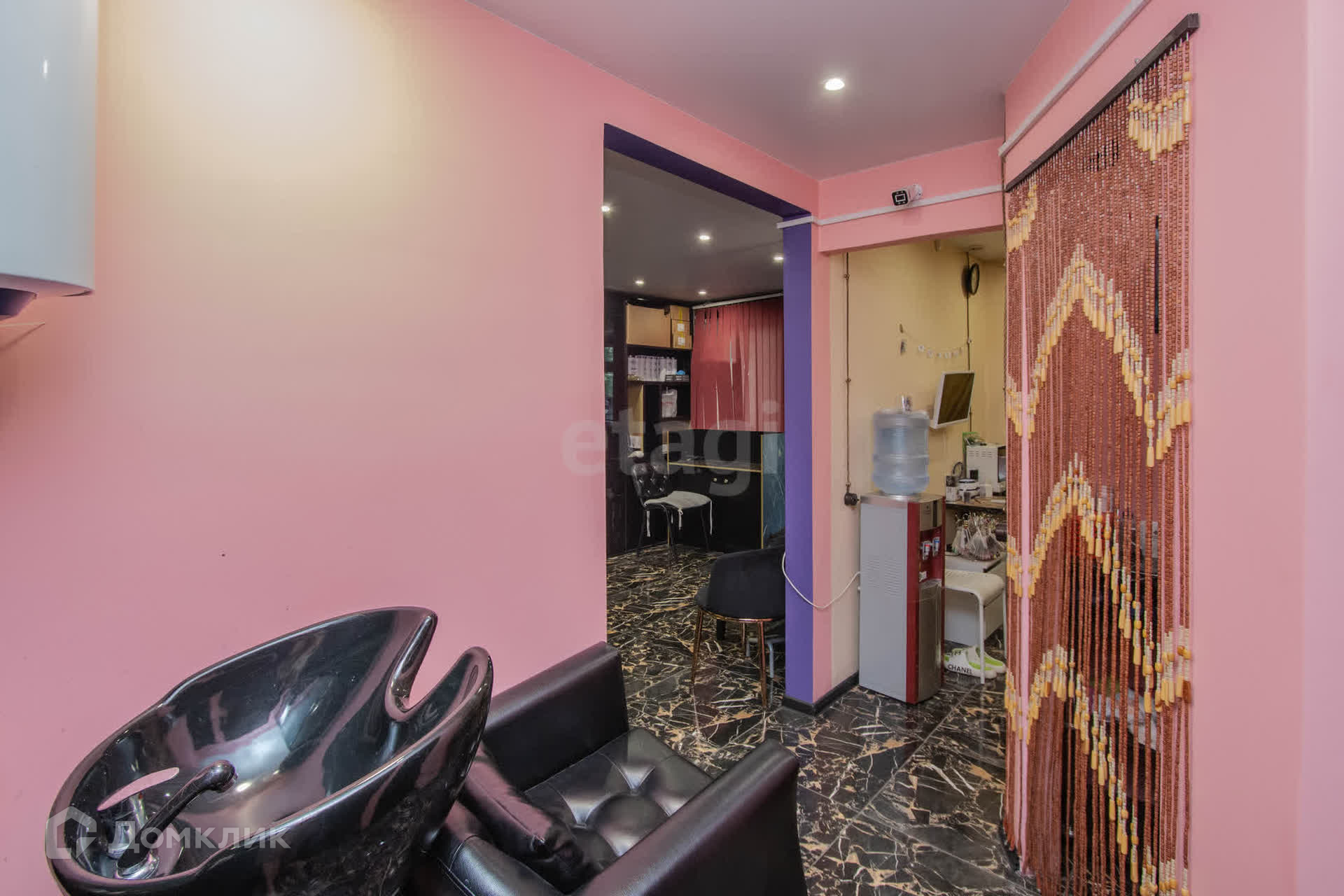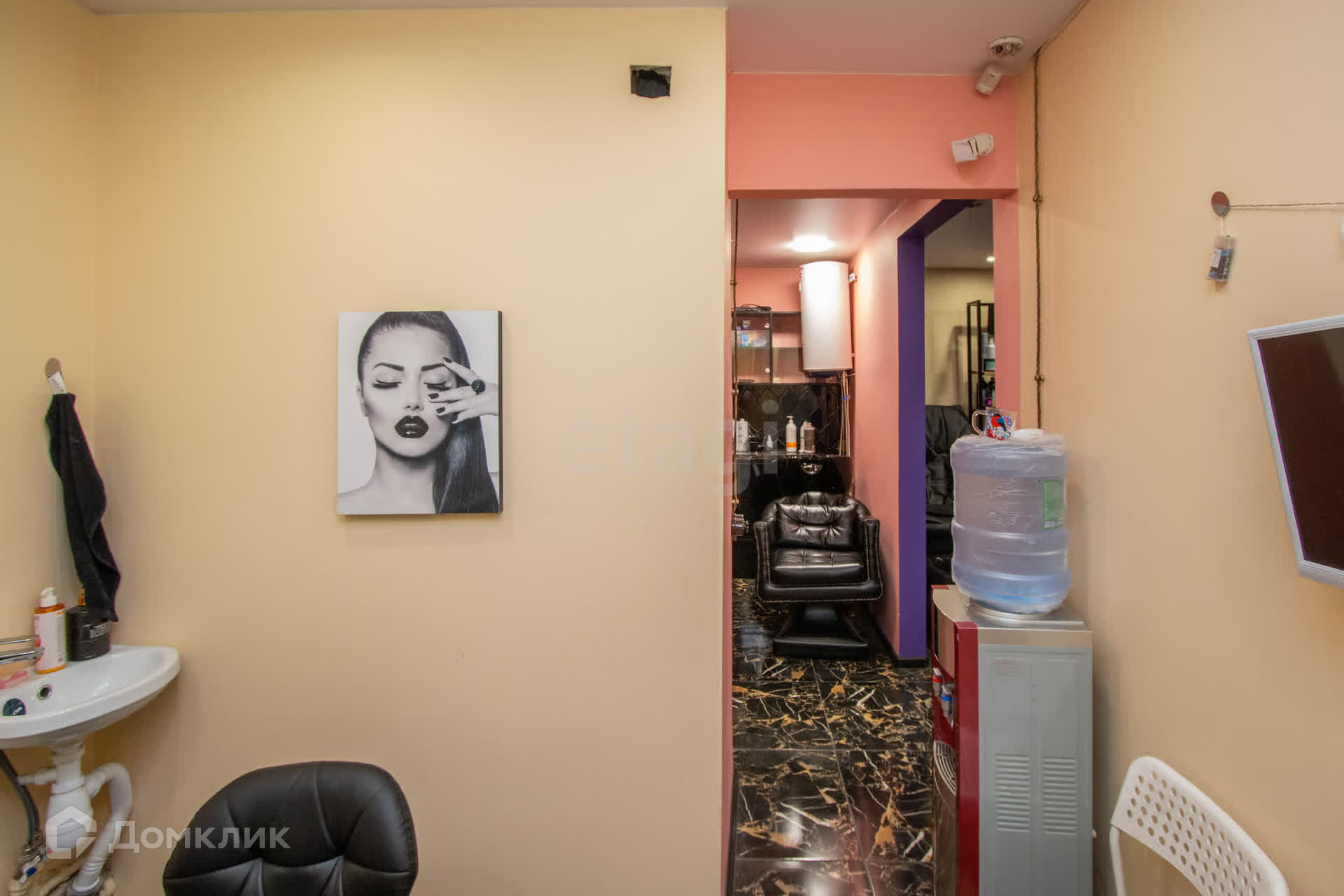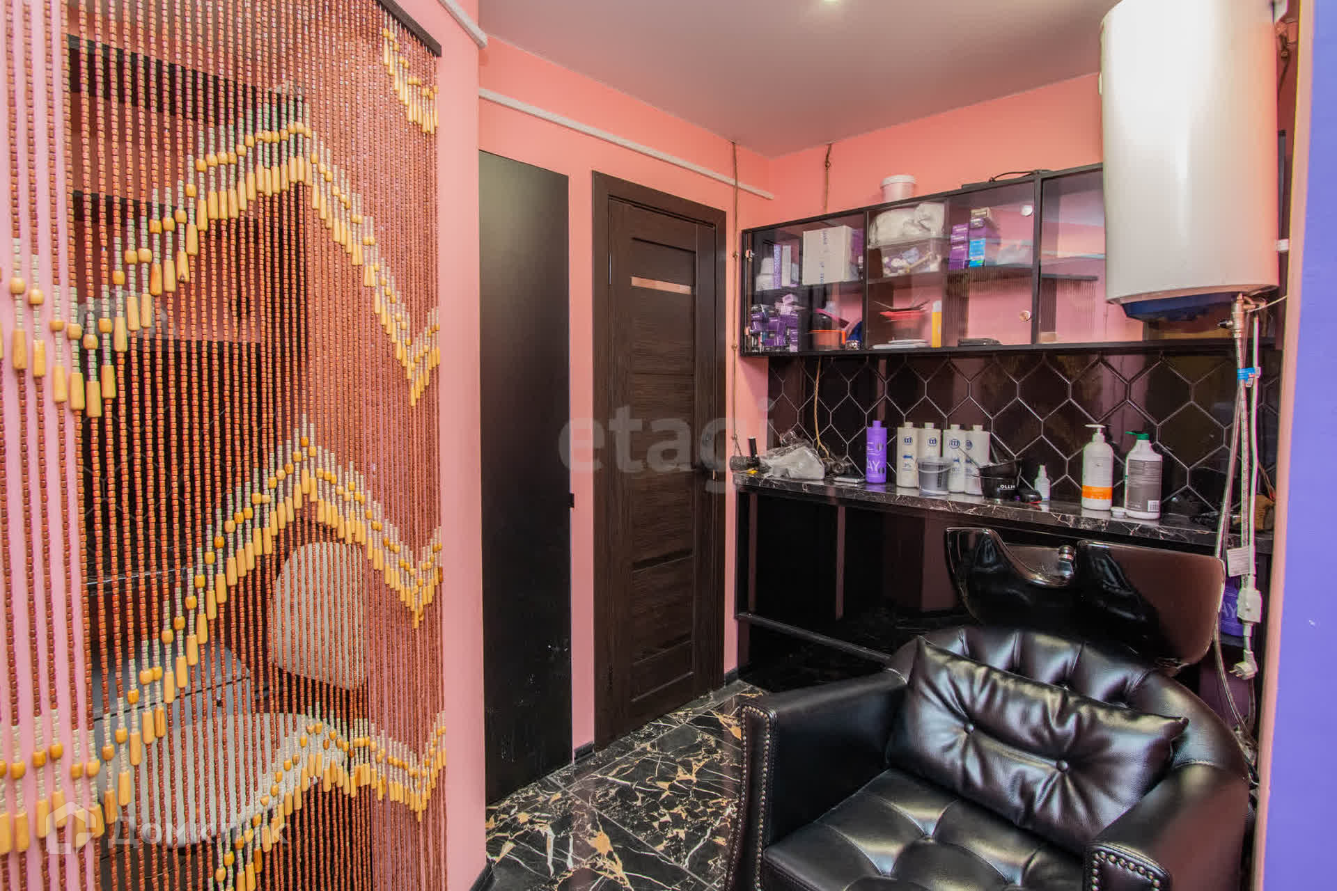 Остается в подарок стойка в комнате, колор-бар, кондиционер, парикмахерская мойка, парикмахерское кресло.