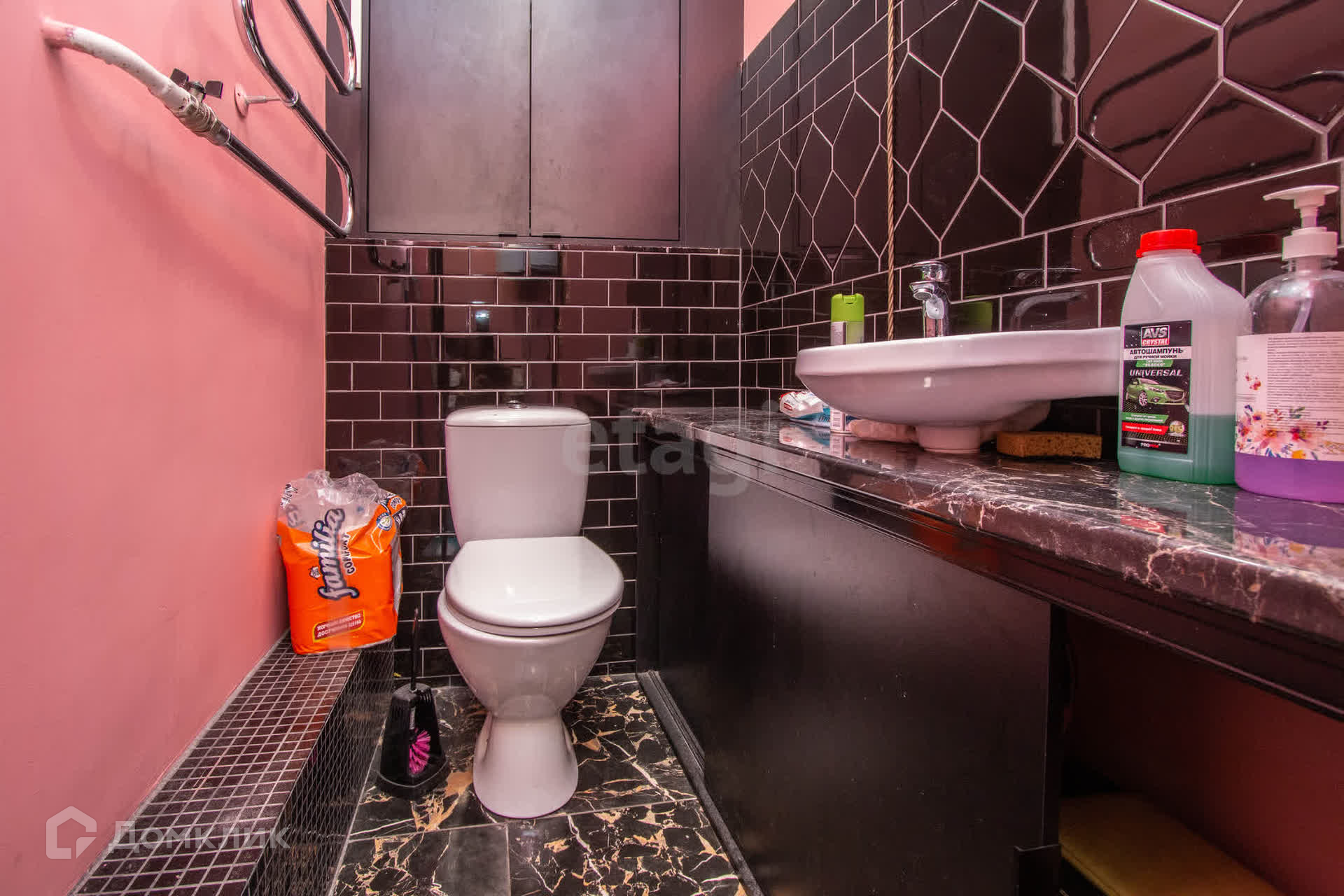 Санузел отделан кафельной плиткой с одной стороны, а с другой штукатурка.