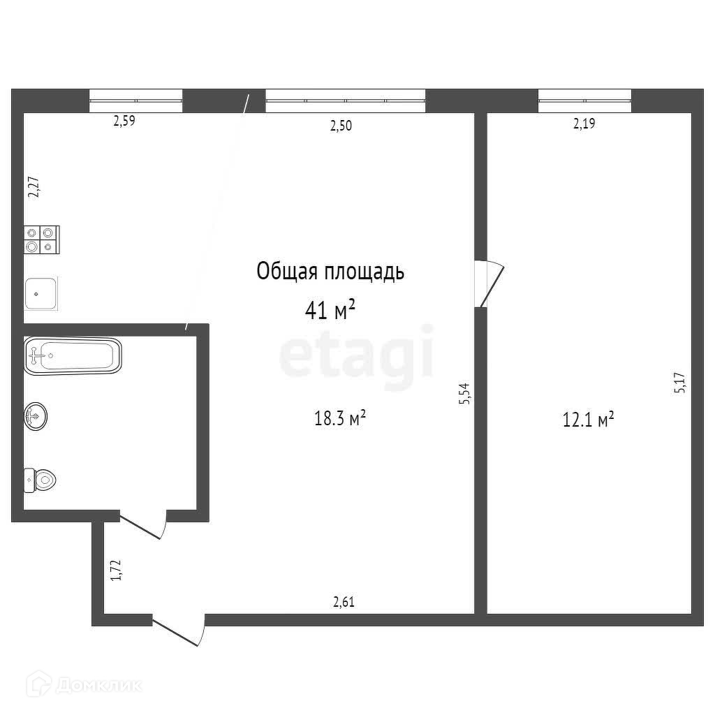 Общая площадь 41 м2