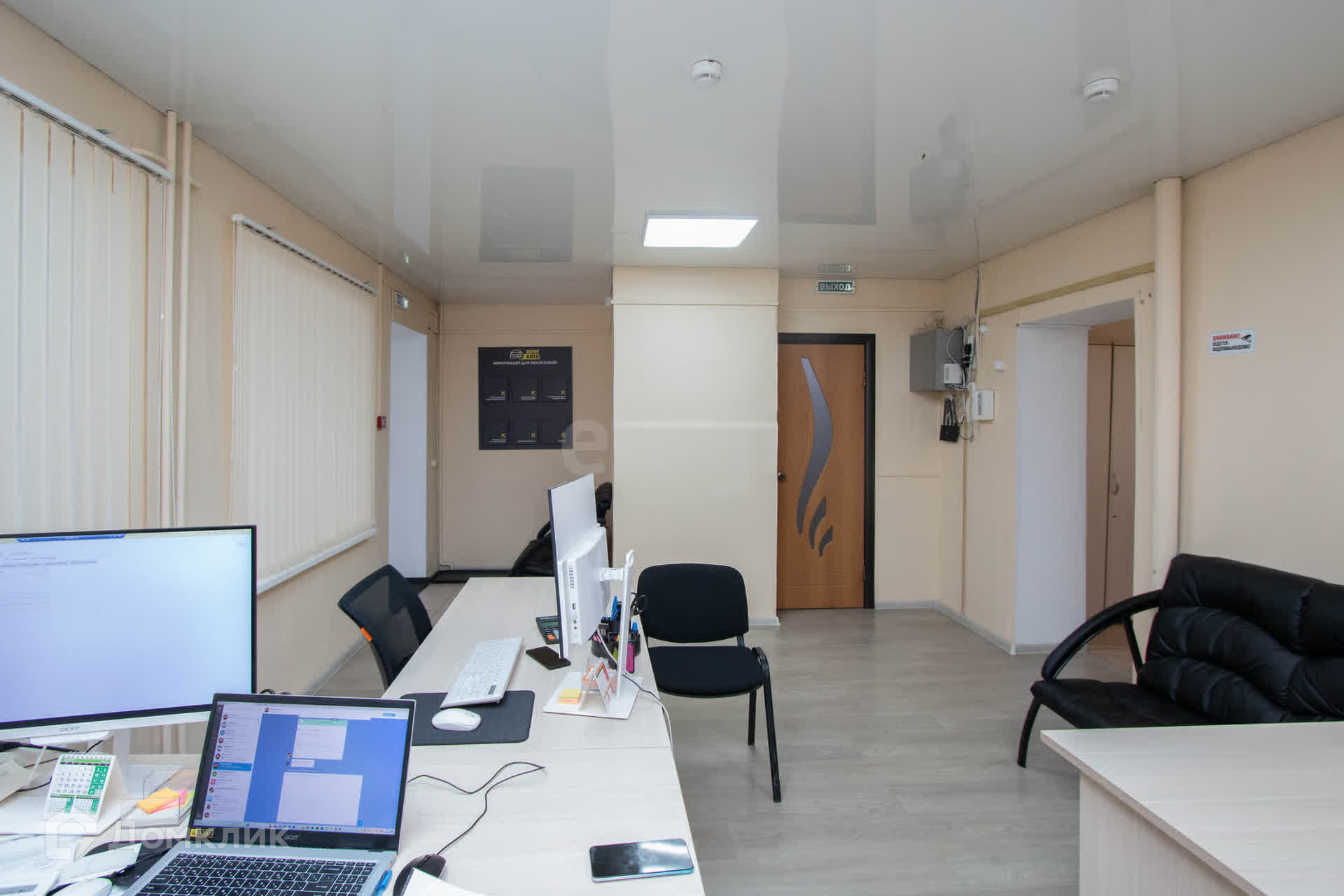 Помещение общей площадью 46 кв.м. расположено на втором этаже и идеально подходит для офиса или другого бизнеса. Внутри вас ждёт просторный тёплый холл с панорамными окнами. На полу в холле уложена плитка, в кабинетах — качественный ламинат. Потолки — натяжные, что придаёт интерьеру современный вид.