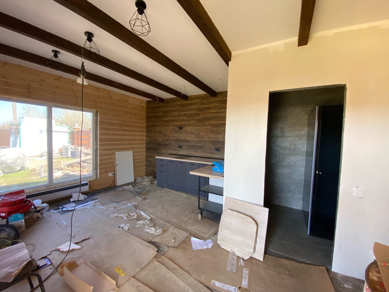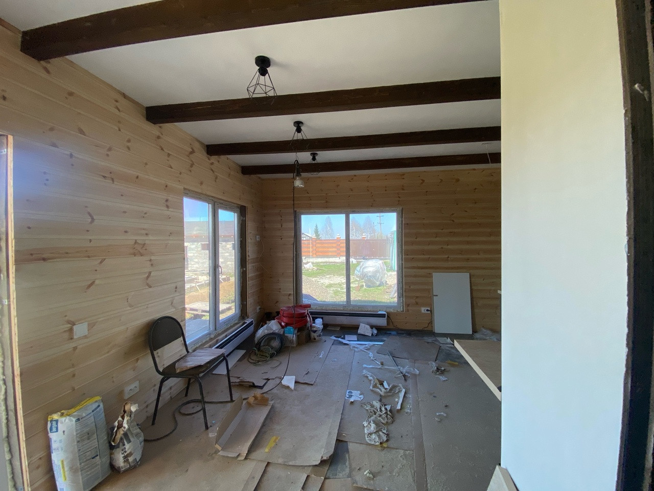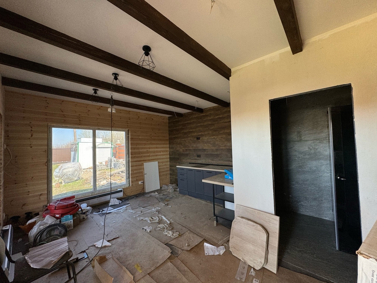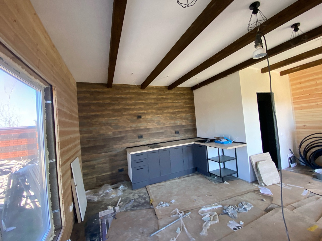 Гостевой дом из бруса, выполнены все этапы обработки материала - в доме гостили зимой ( электрические радиаторы отопления достаточно обогревают помещение, было даже жарко ). Стоят качественные стеклопакеты. Установлен новый кухонный гарнитур, новая душевая кабина и бойлер. В дом все заведено - и вода, и электричество, слив выведен. В душевой сделан пол с подогревом. Пол и стены по всему дому выложен керамогранитом, в душевой кабине - плитка. Большая терраса - опалубка лиственница.