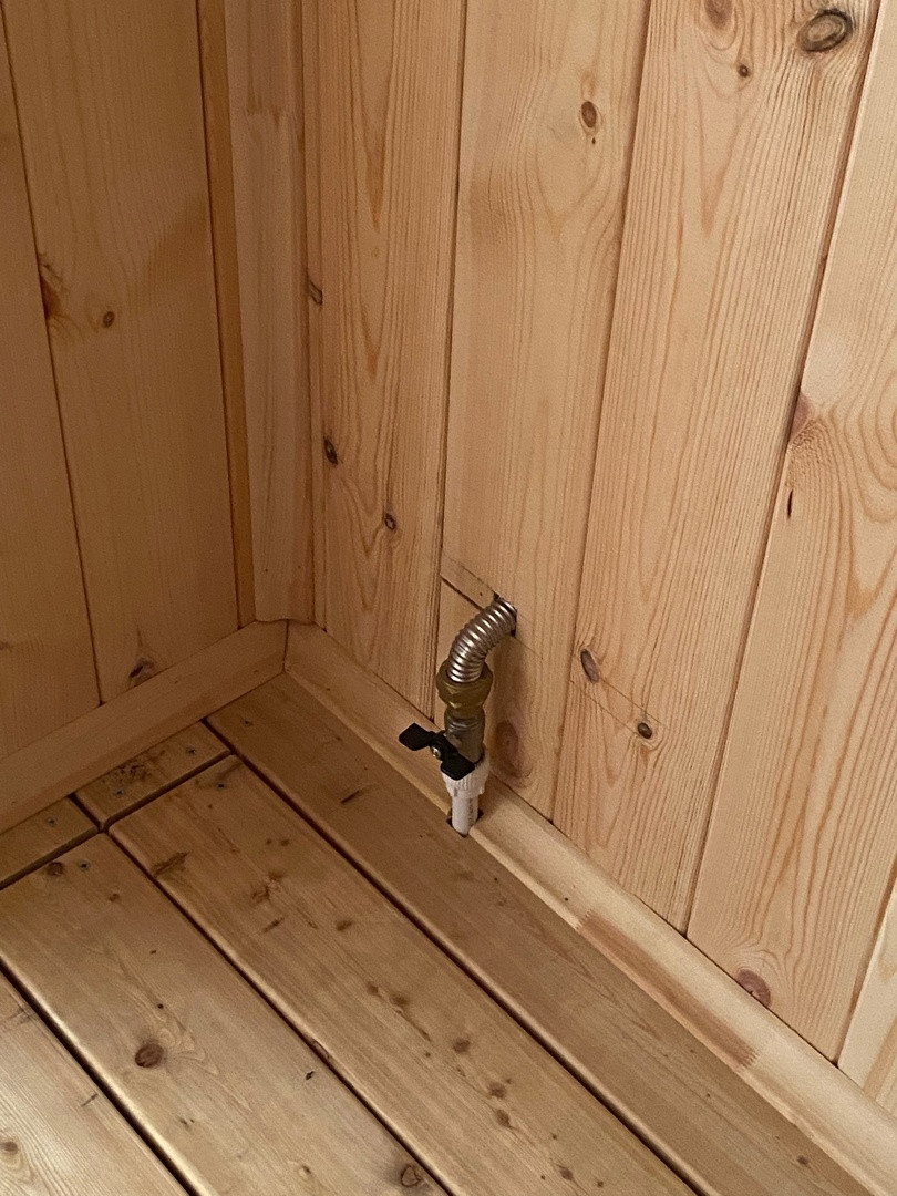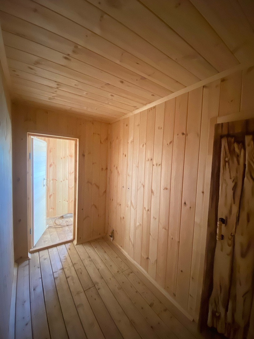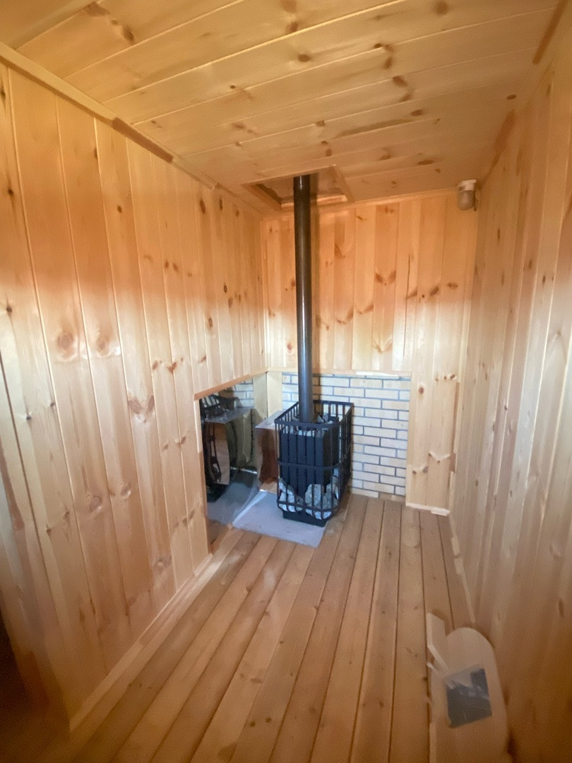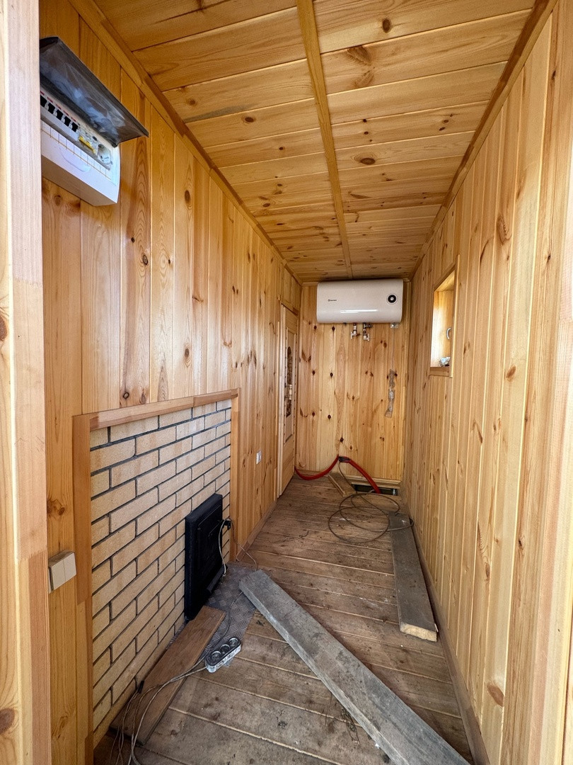 На полу лиственница, установлена современная печь. Выведено два слива - для парной и для помывочной. В бане так же установлен бойлер, заведена проводка.
