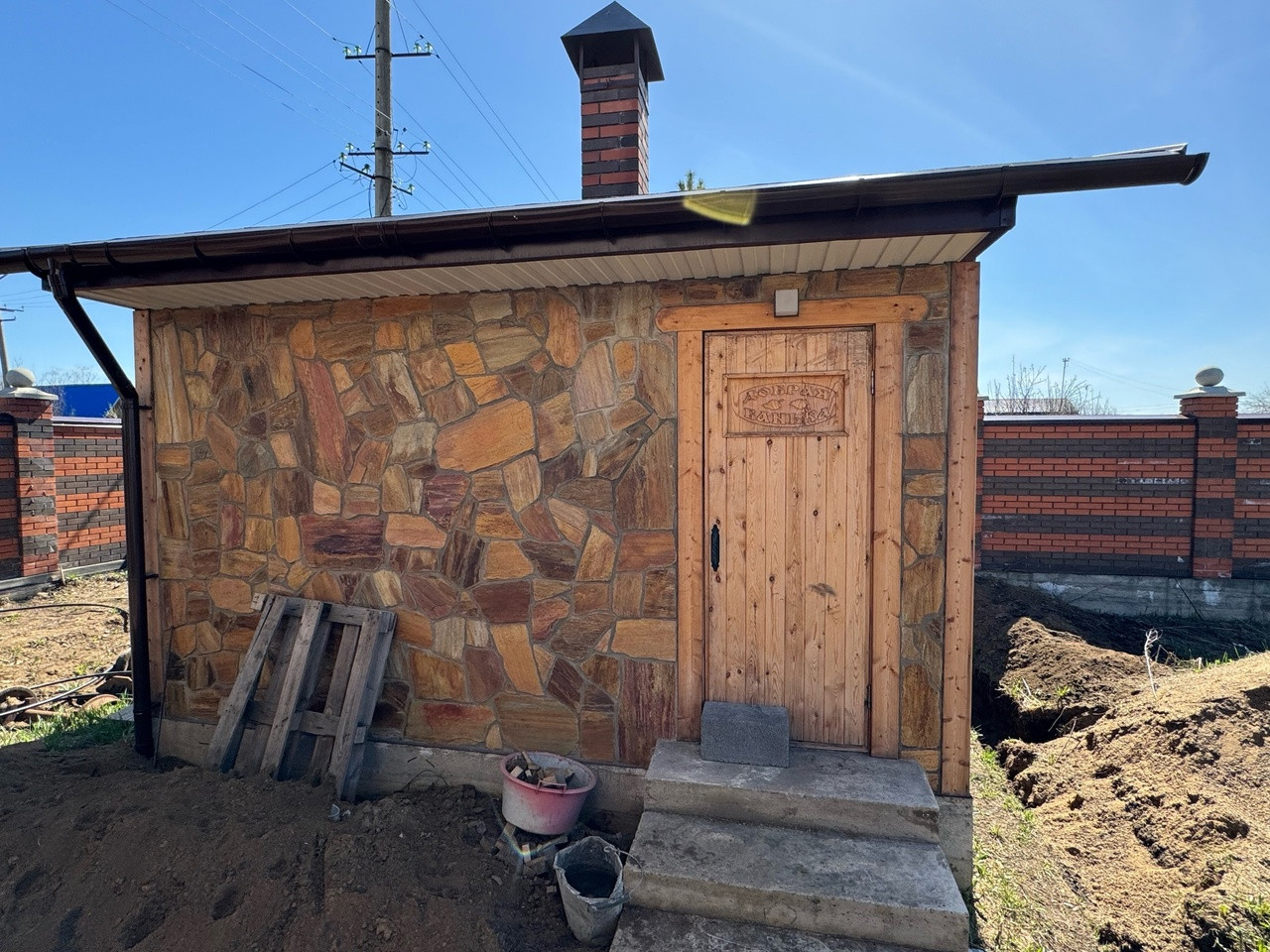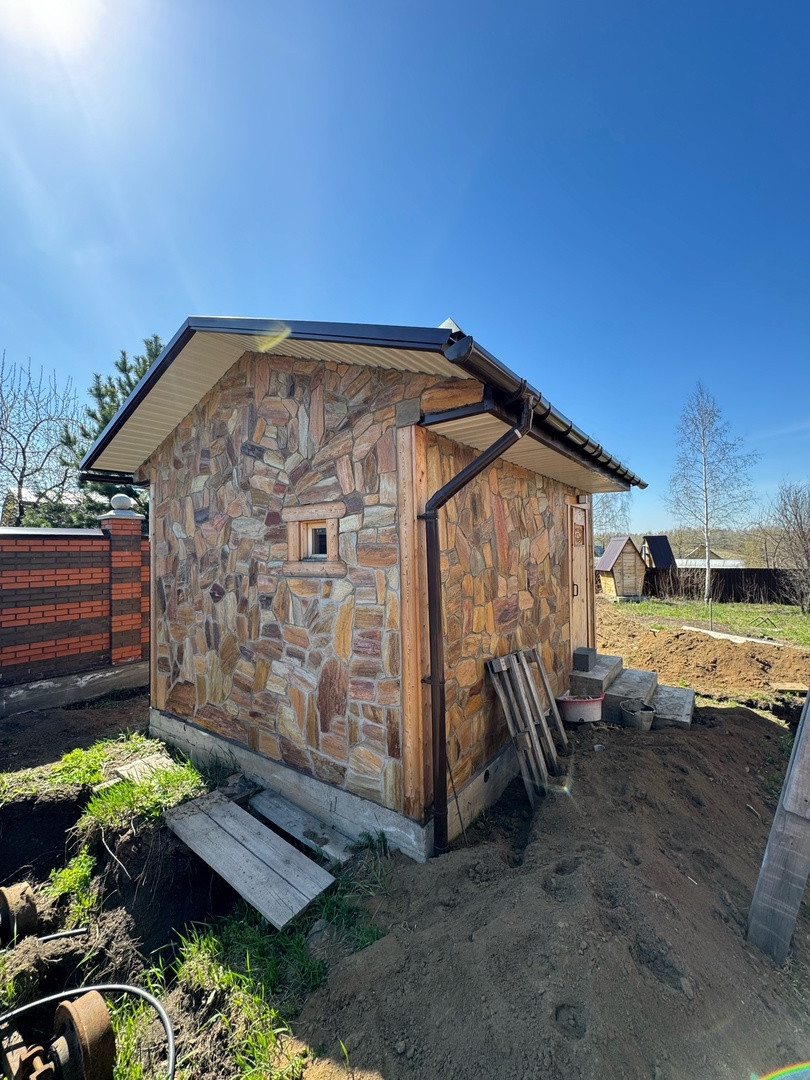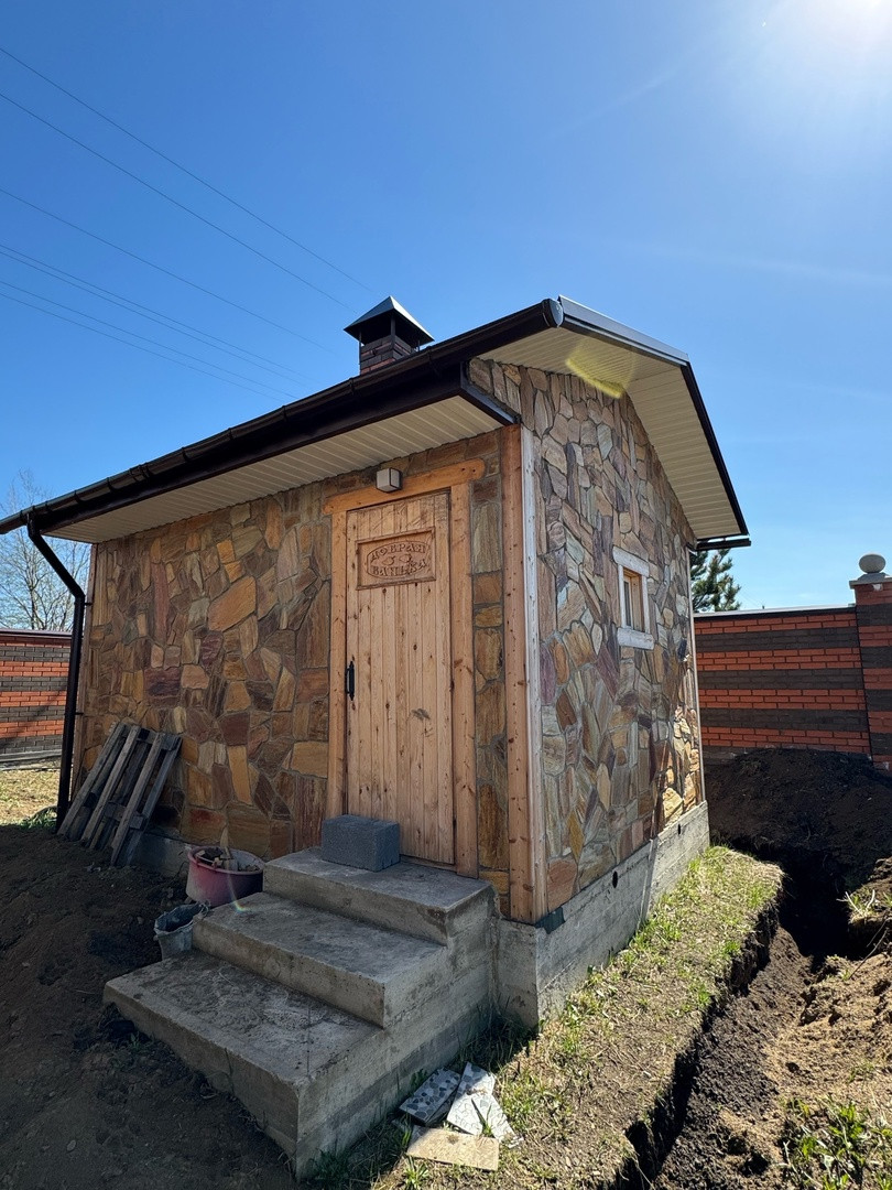 Баня из кедра. облицовка - алтайский сланец.