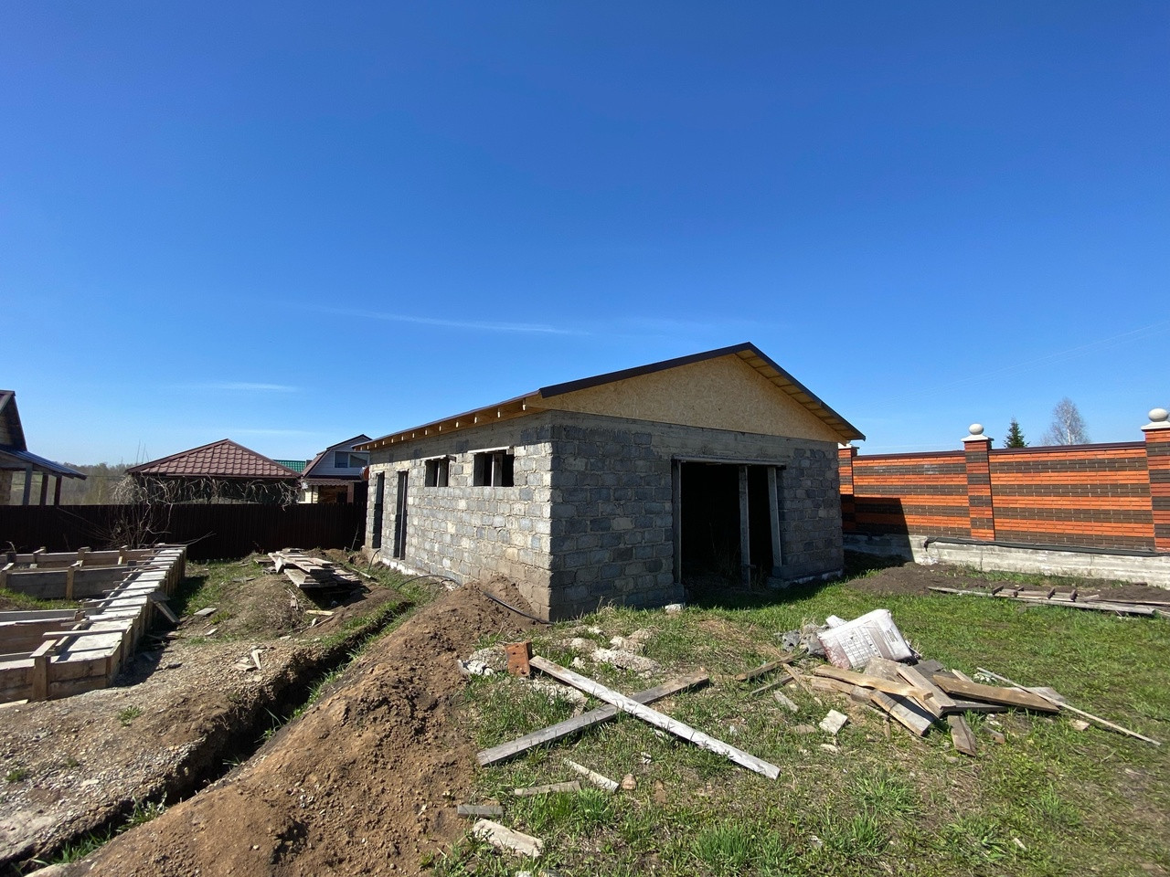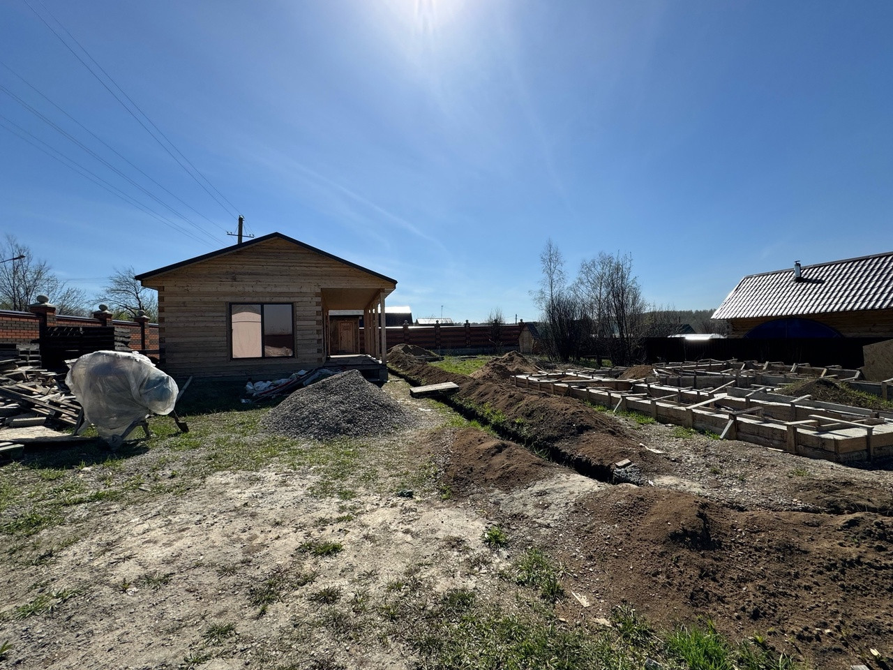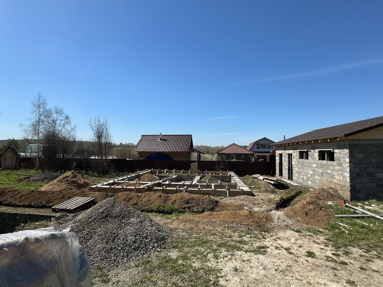 Залит свежий фундамент на дом. Имеется проект, заинтересовавшимся можем скинуть. Планировался дом в два этажа +100кв м.