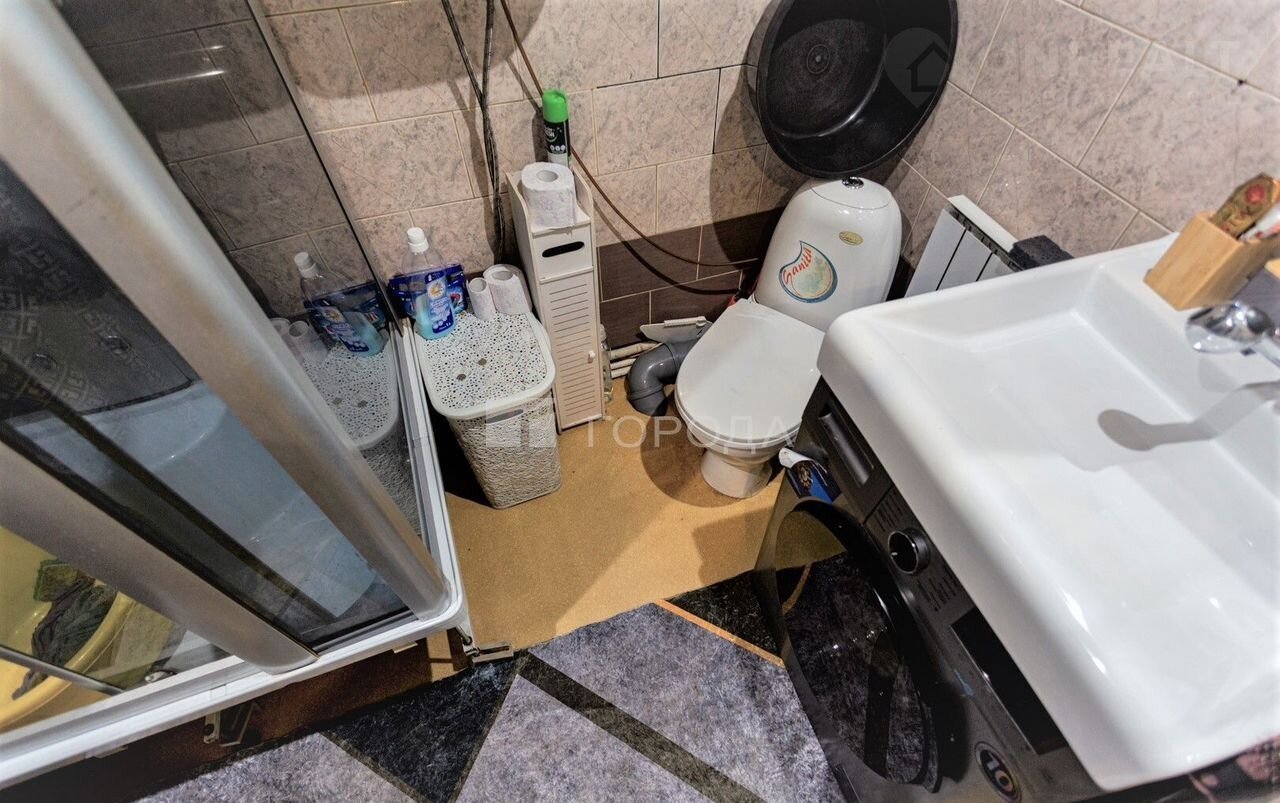 Санузел совмещенный в кафеле и находится в доме.