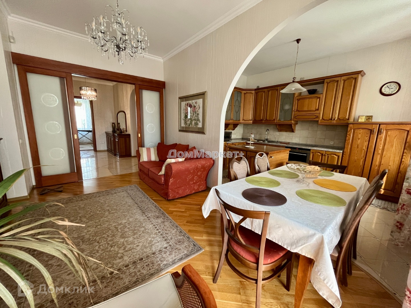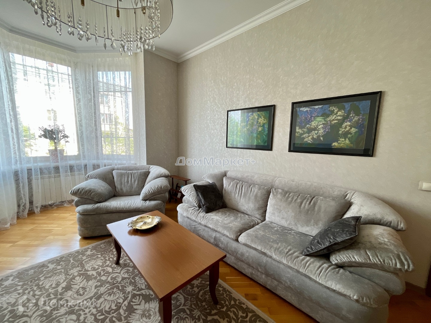 Гостиная совмещенная с кухней, зонированная обеденная зона. На кухне вся техника, на застекленном балконе зона отдыха, выходит во двор, где нет шума от дороги.