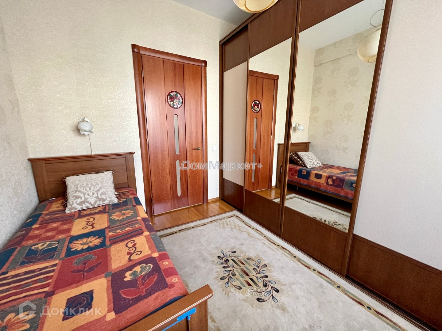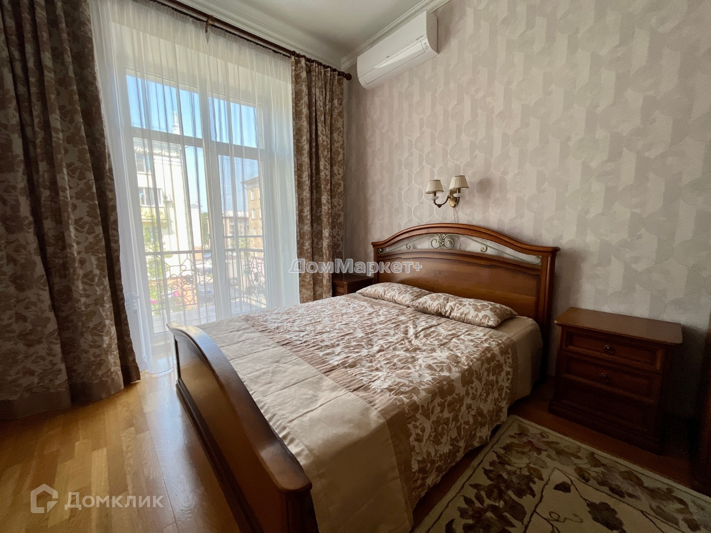 В спальне шикарная кровать с ортопедическим матрасом, балкон.