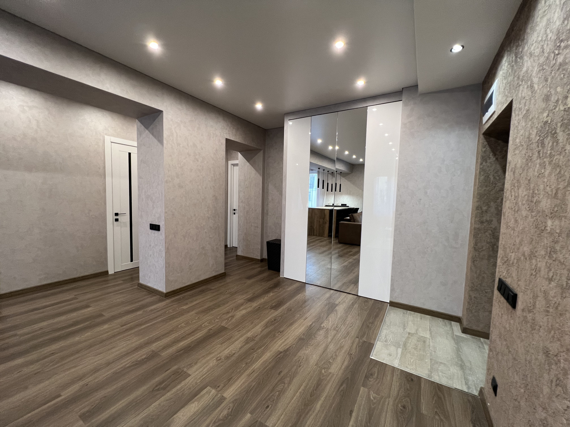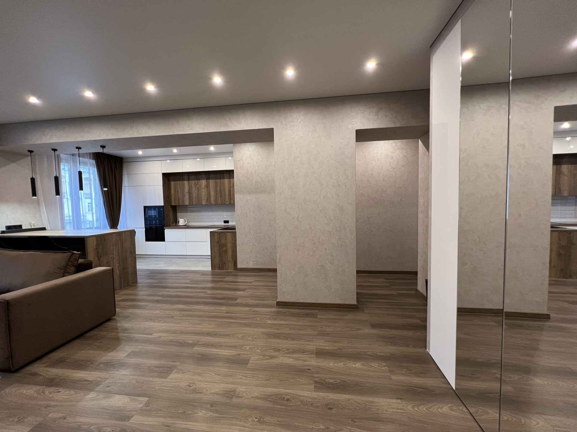 По всей квартире стены выровнены и отделаны современным покрытием.