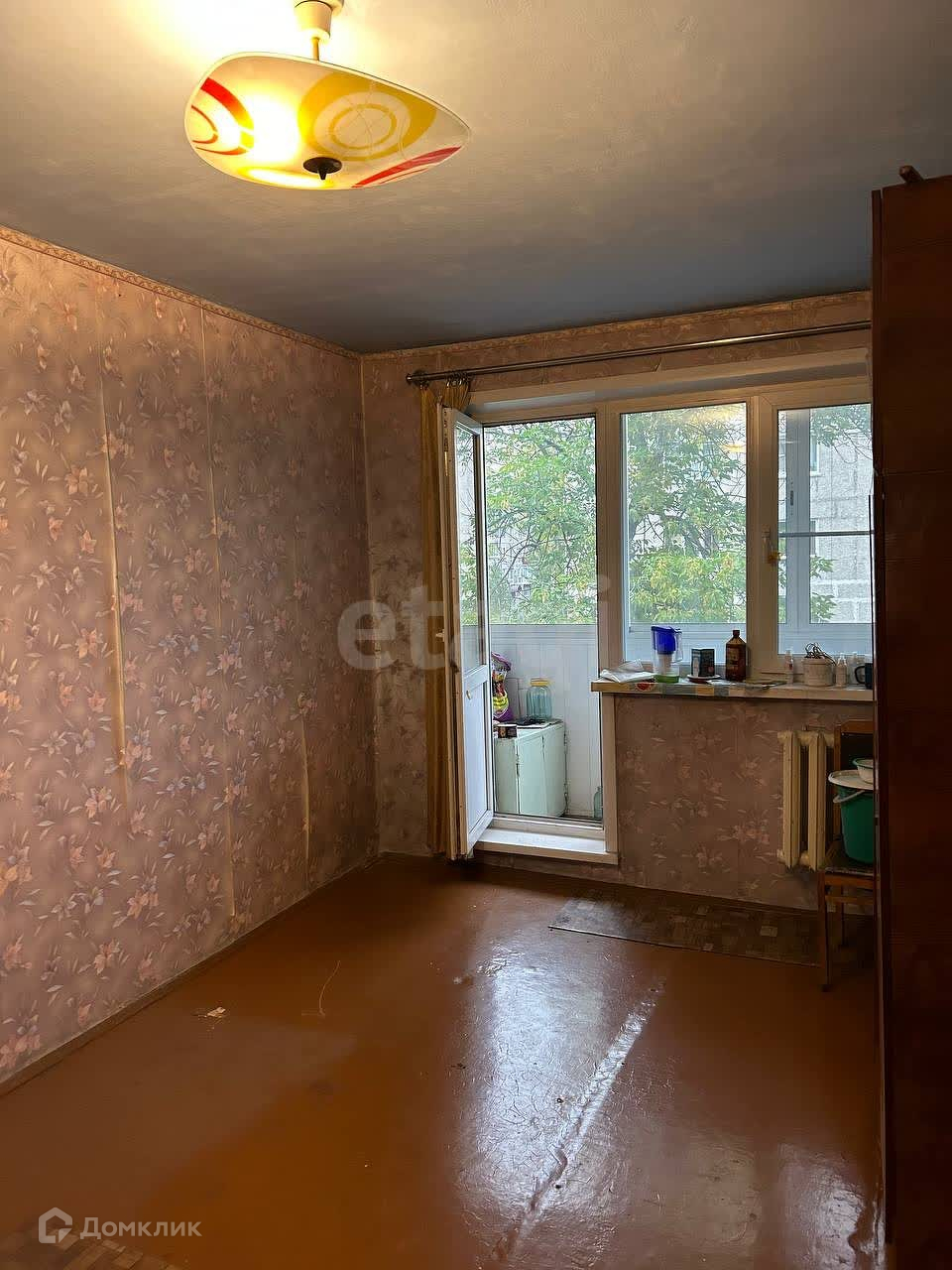 Из мебели и бытовой техники в квартире имеется диван, плита, холодильник, шкафы. Пластиковые окна, остекленный балкон. Санузел раздельный.