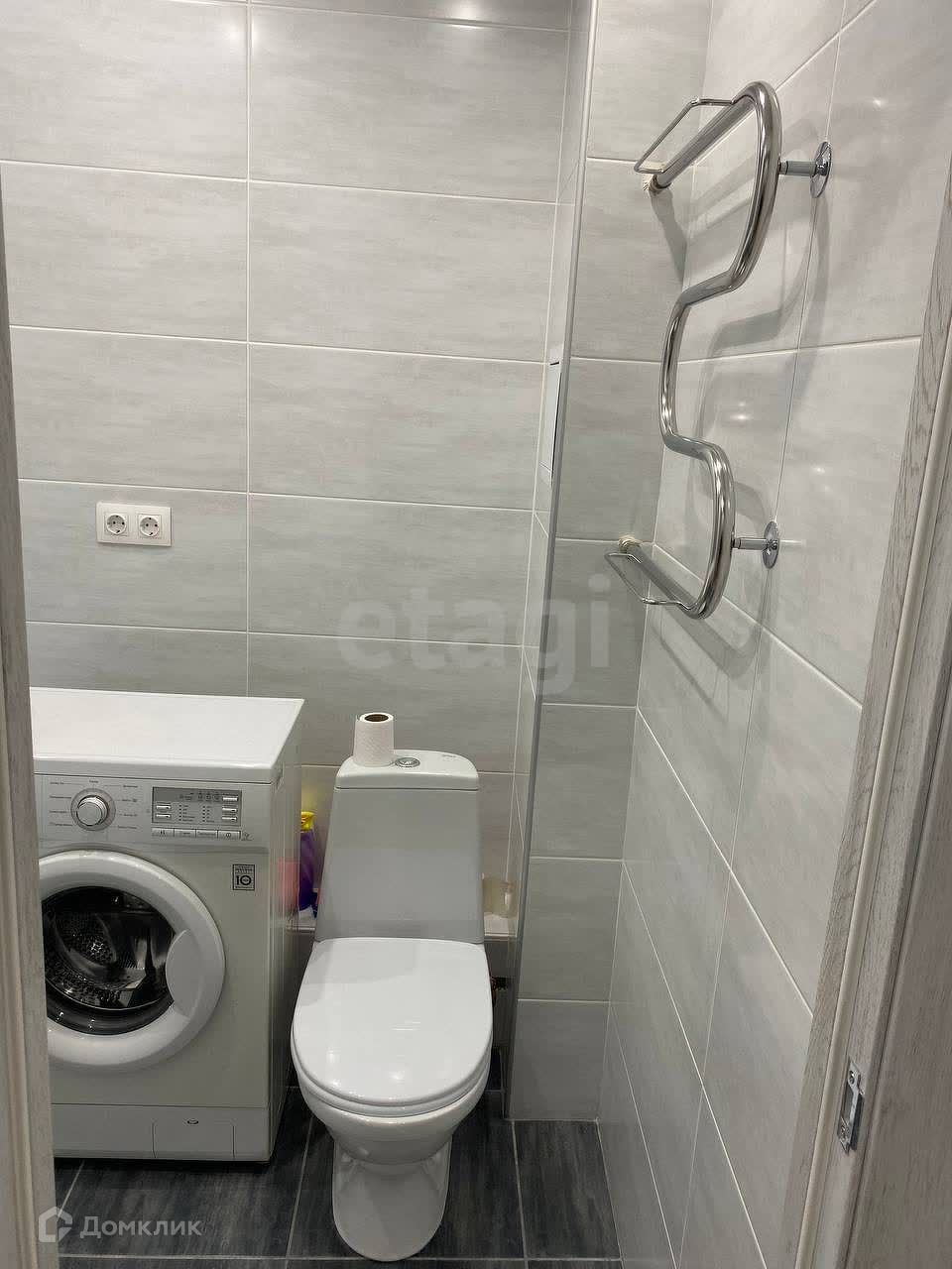 Санузел совмещен, установлена стиральная машинка.