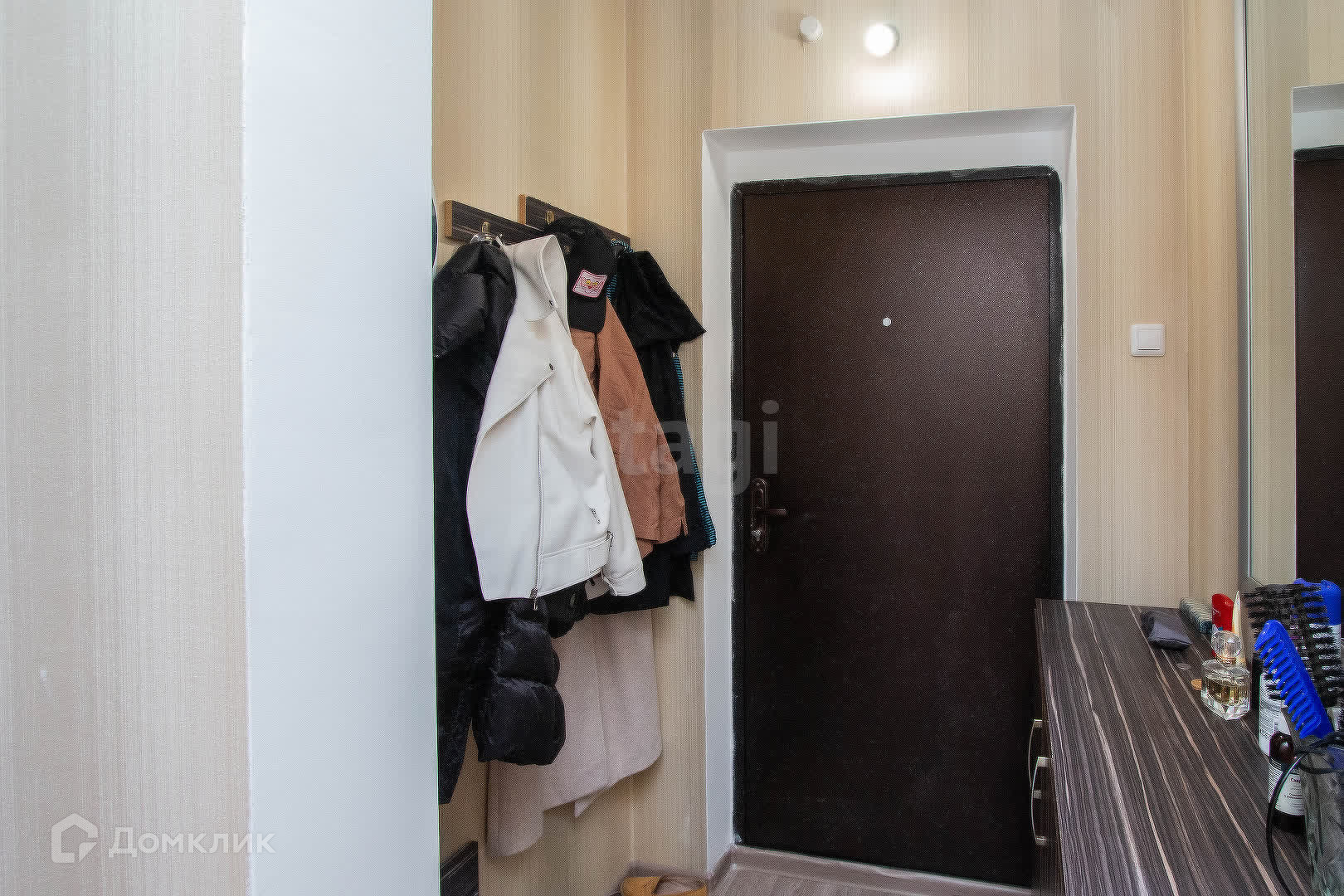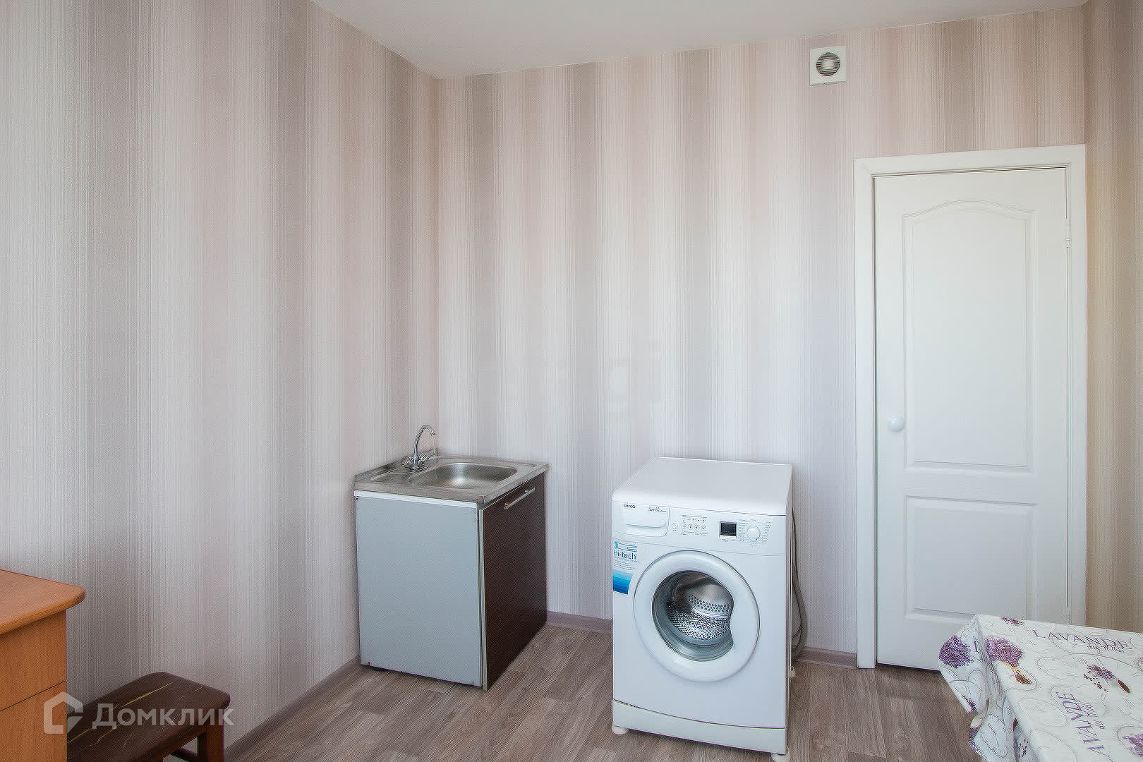 В квартире имеется: угловой шкаф для одежды, зеркало, комод, стиральная машинка, холодильник, компьютерный стол, однокомфорочная плита, сушилка. А так же спальные принадлежности: одеяло, подушки.