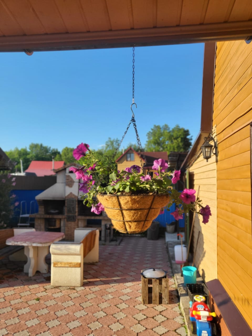 Вся обстановка, мебель, бытовая техника остается, ряд инструментов и садовый инвентарь оставляем.