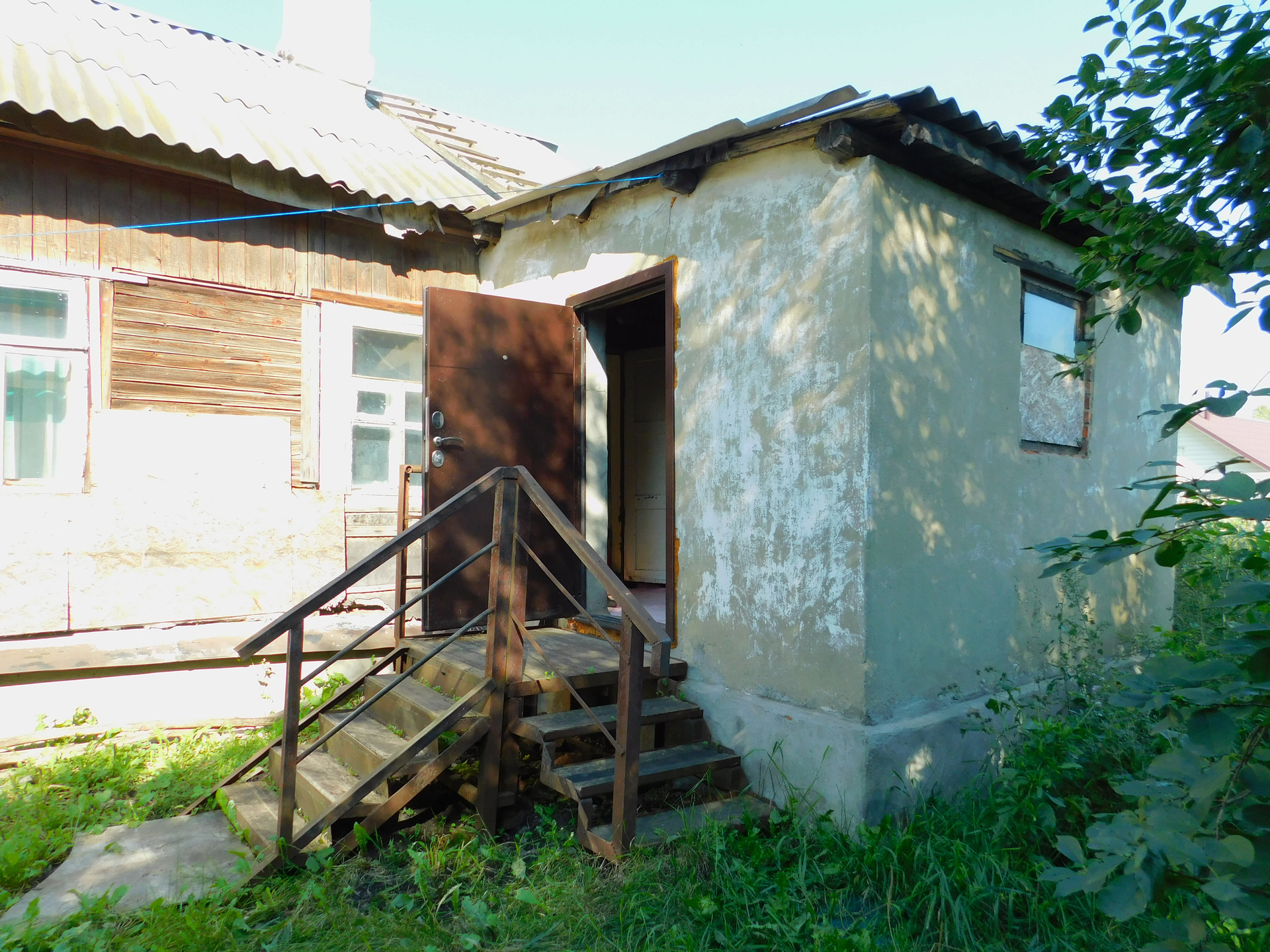 Стены рубленые, 2 пристройки кирпичные.