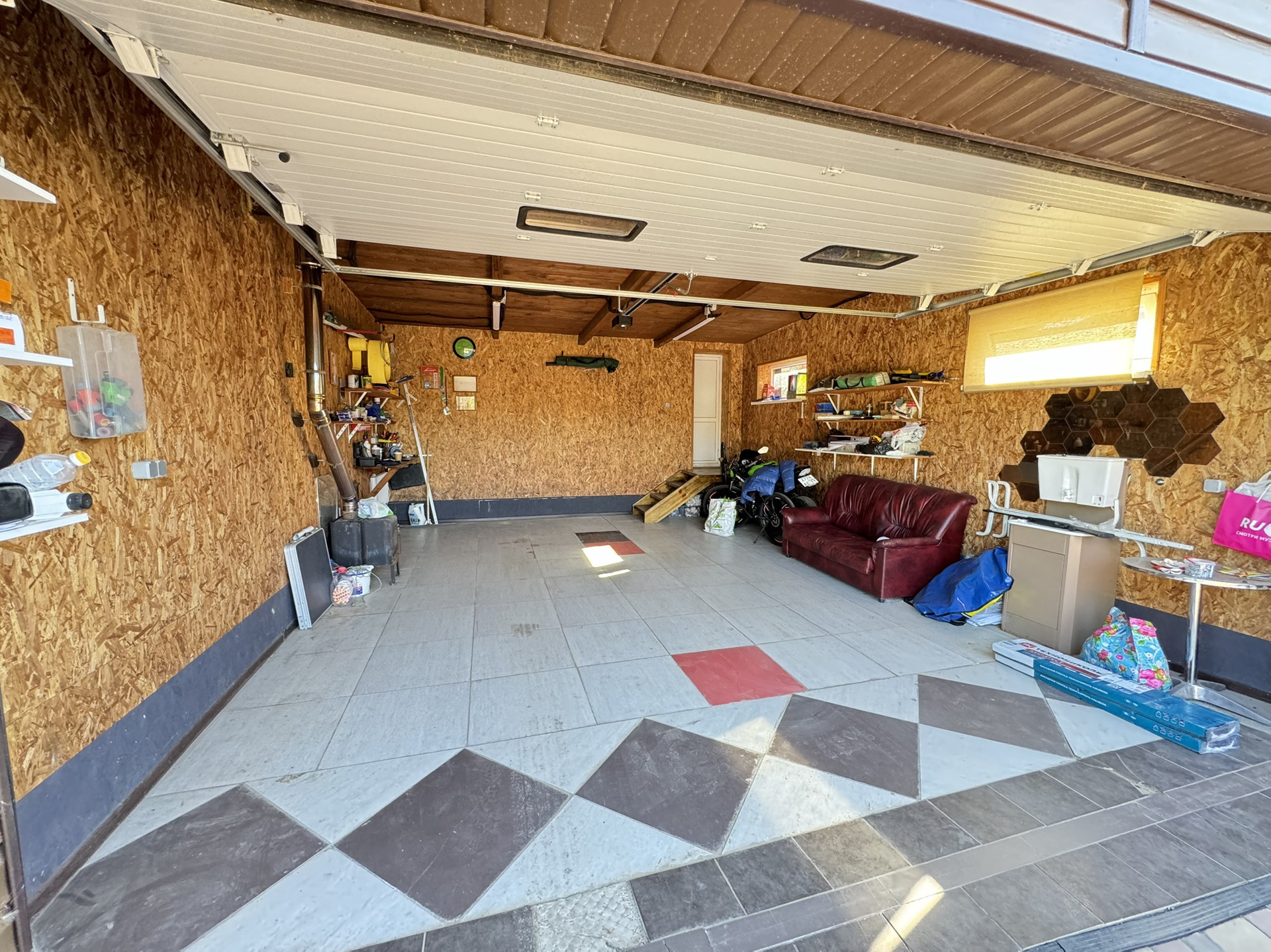 На участке гараж со стеллажами, ворота автоматические