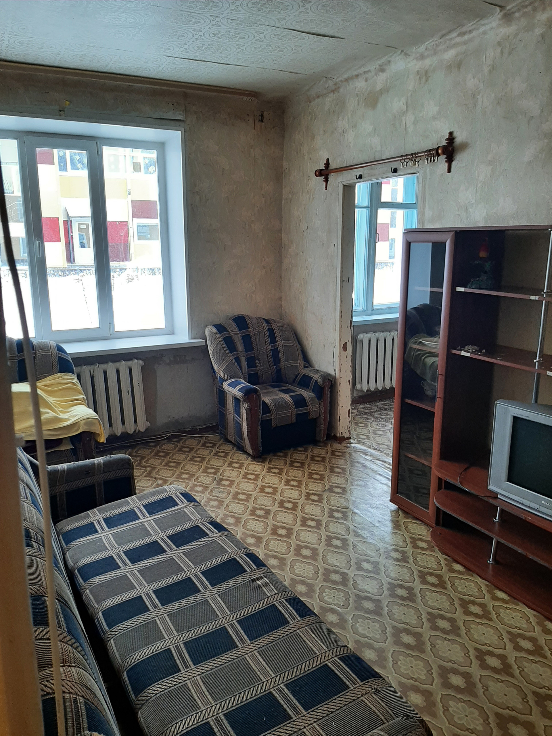Квартира не угловая, комнаты смежные. Требуется ремонт.