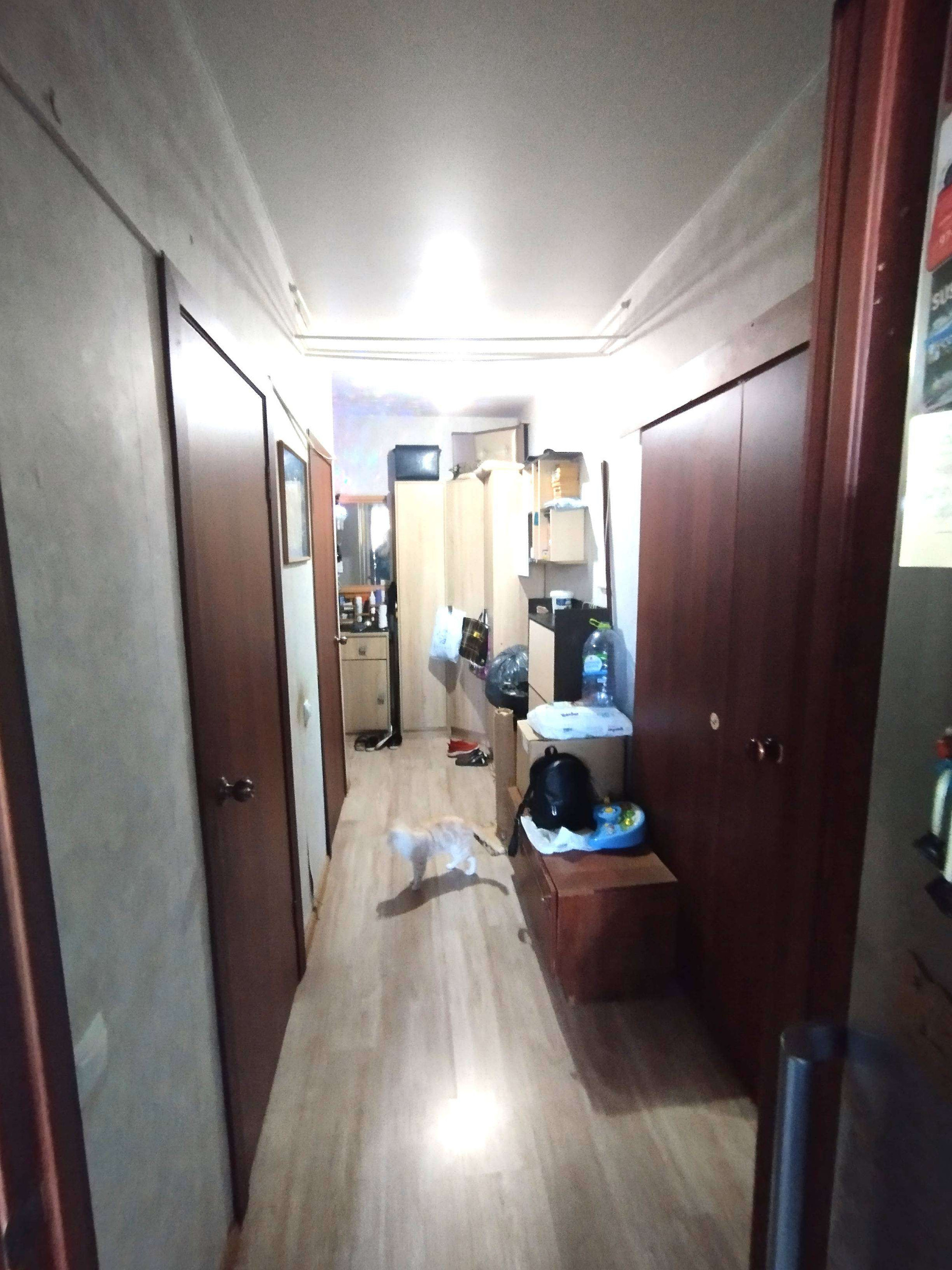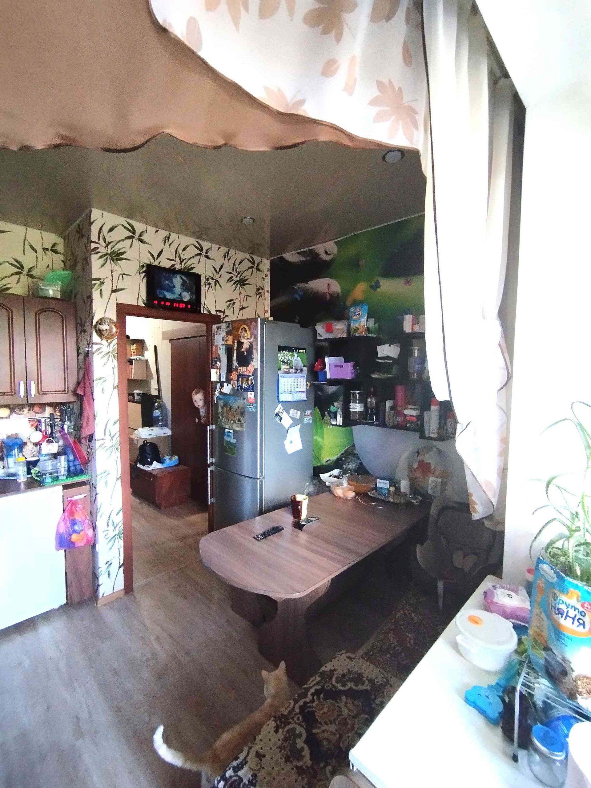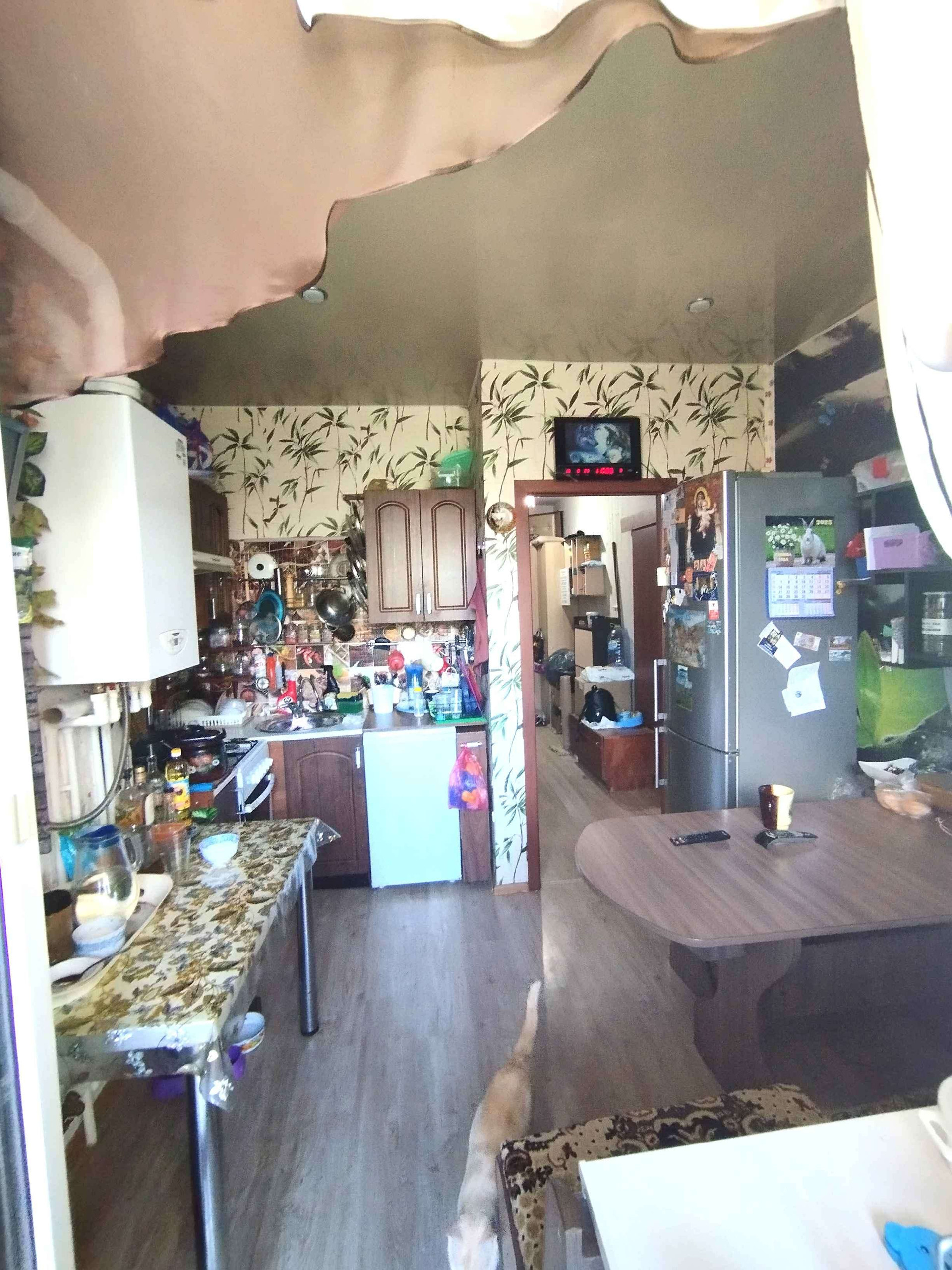 Натяжные потолки, на полу ламинат.