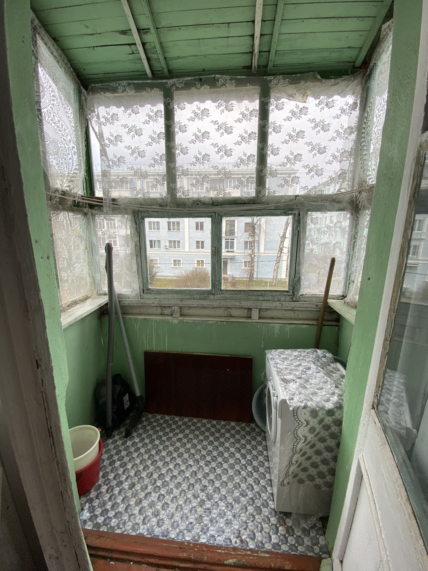 Балкон остеклен деревянными рамами