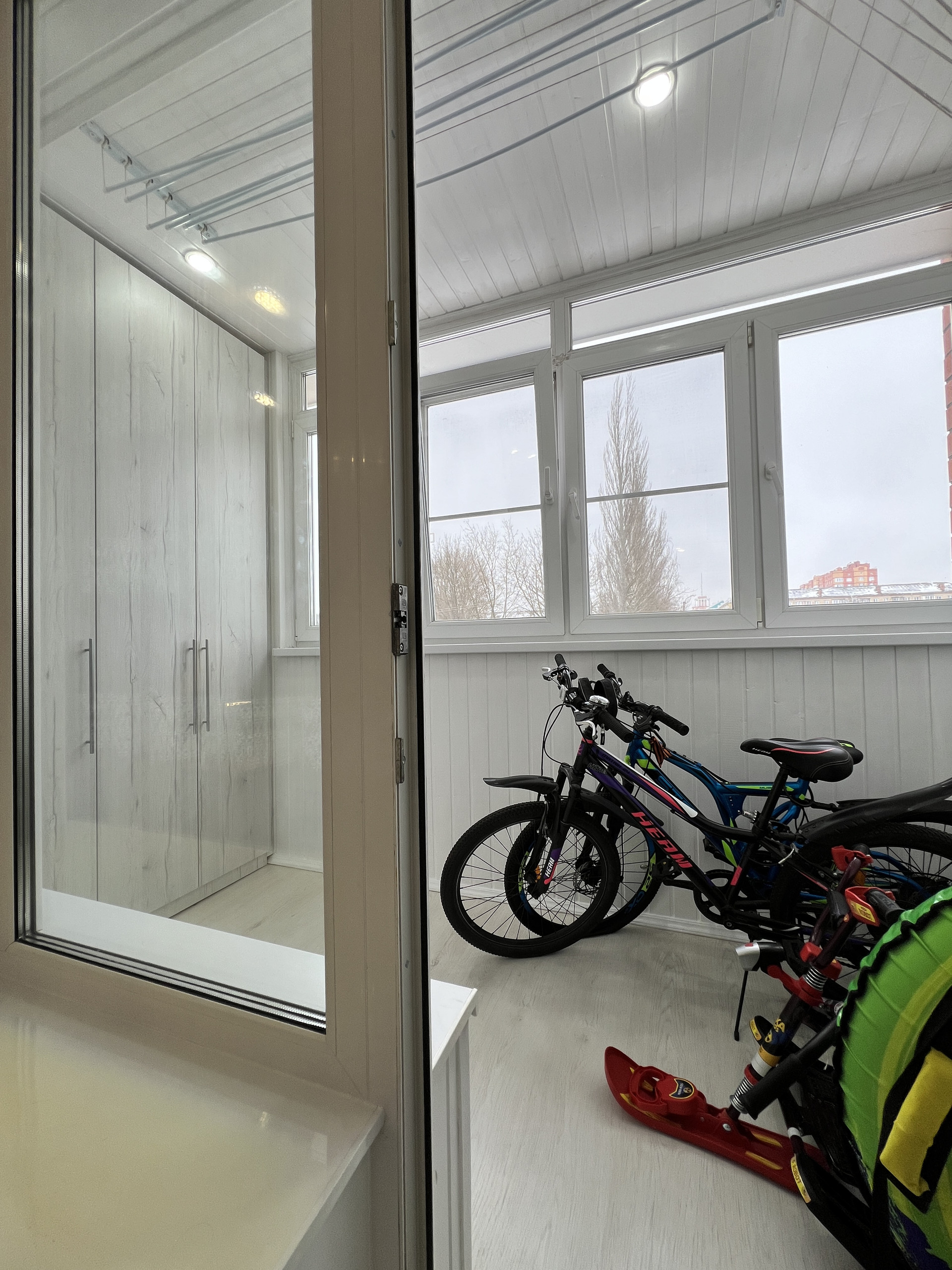 Две просторные лоджии застеклены пластиком, утеплены.