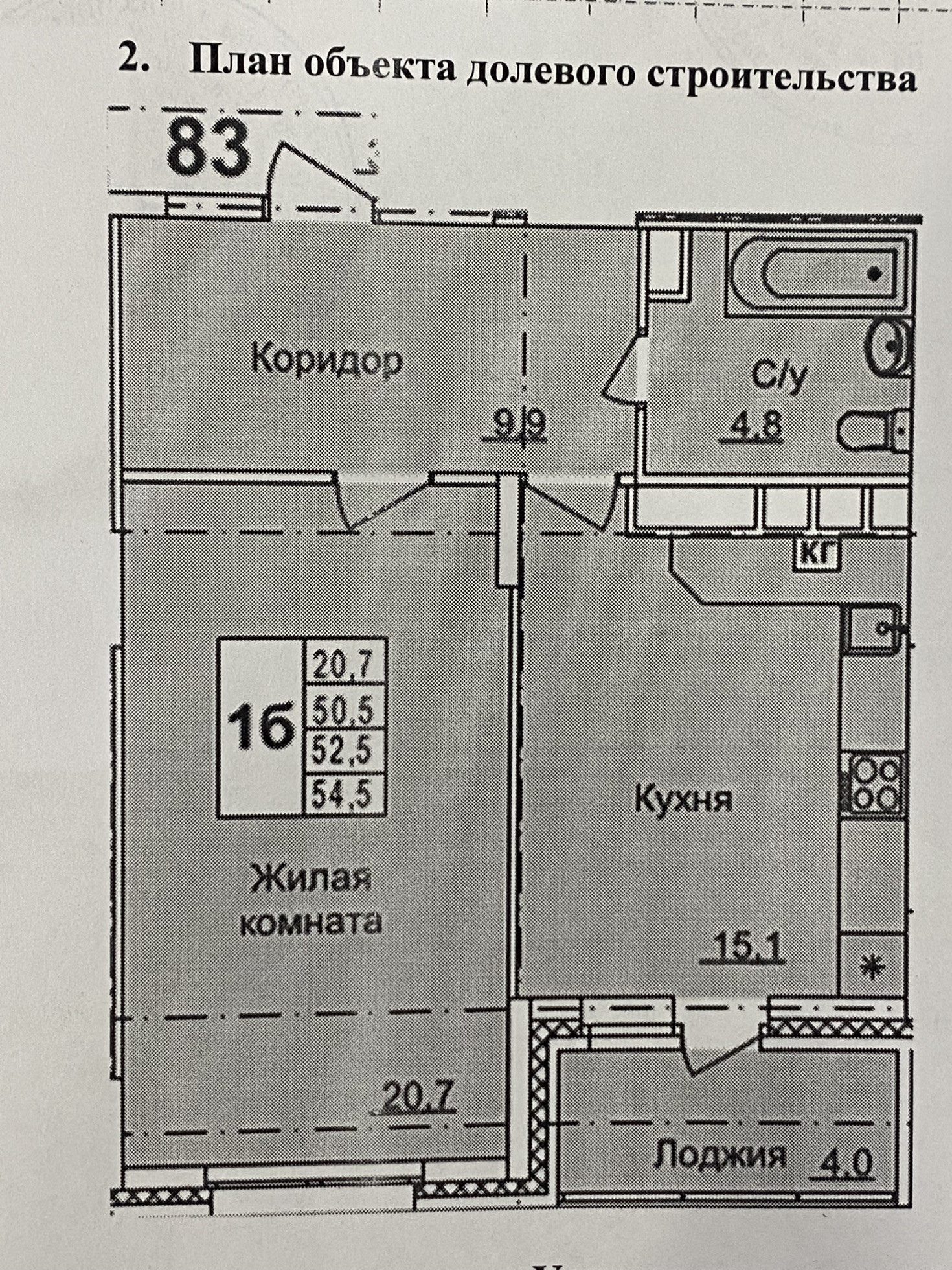 Жилая площадь 20.7 м2