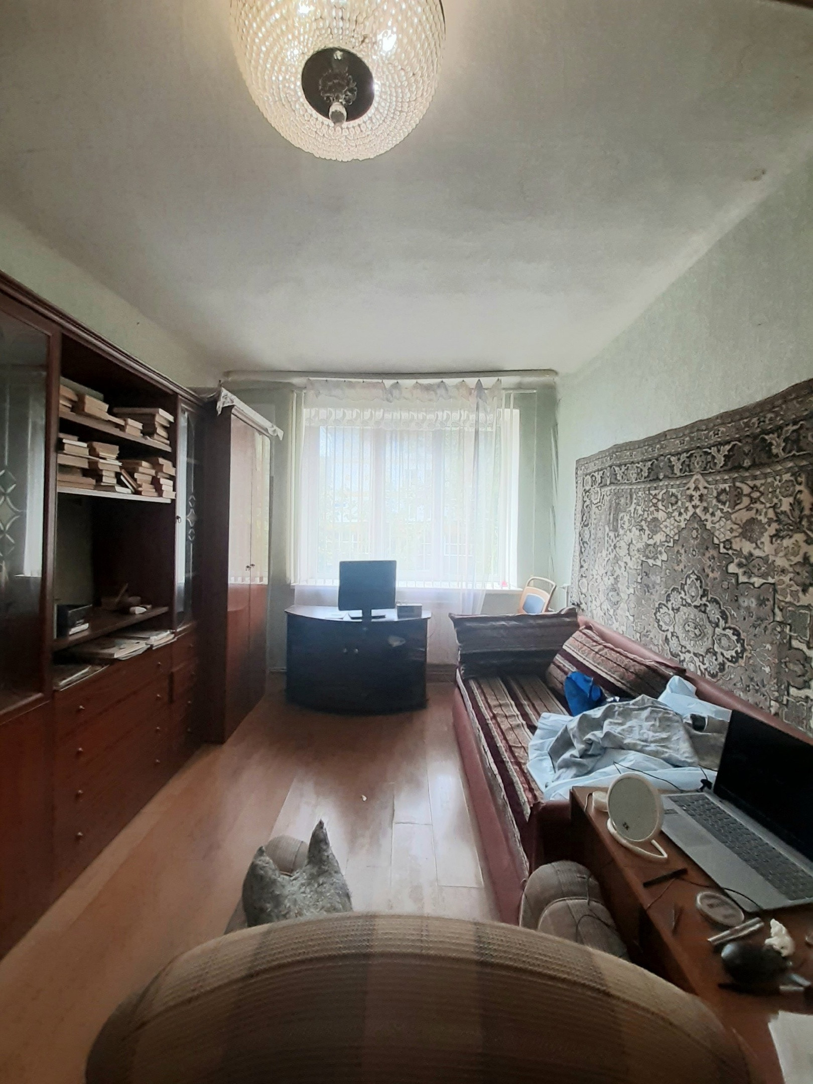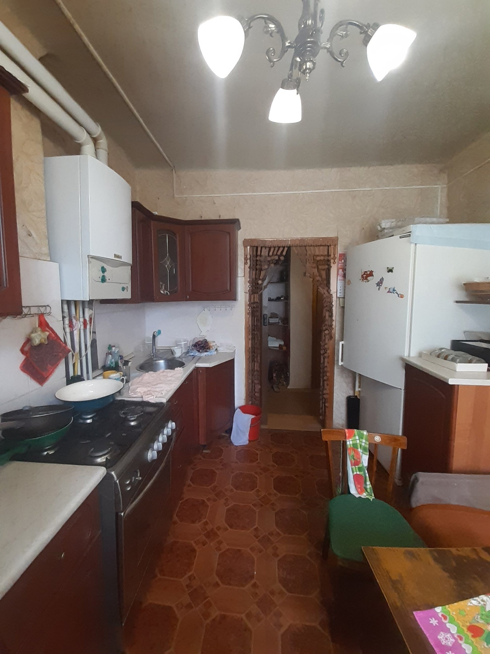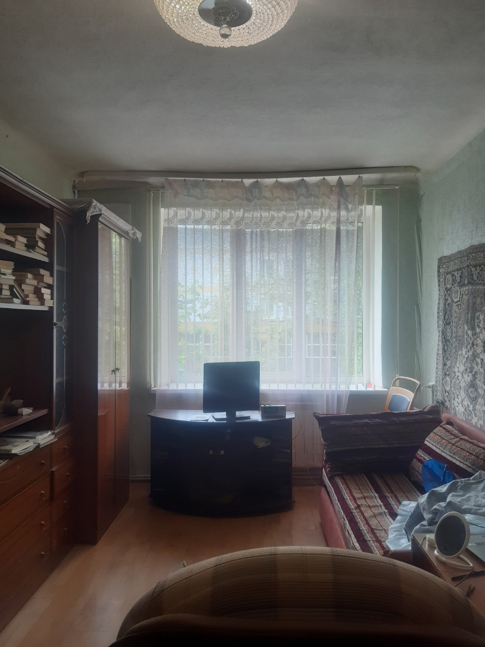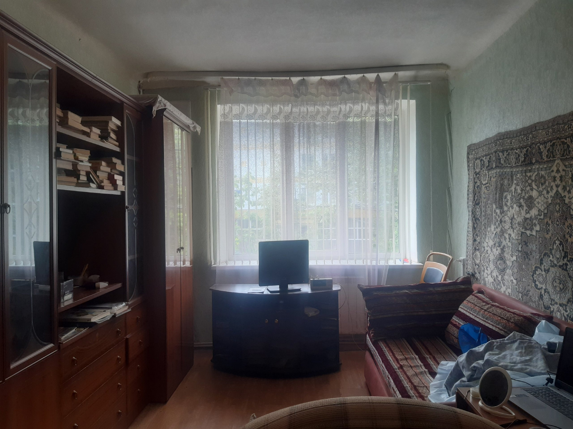 Квартира тёплая,уютная,светлая в самом центре города.в нормальном жилом состоянии. Квартира с раздельными комнатами и раздельным санузлом. Большая кухня, АОГВ. Хорошая входная и межкомнатные двери. Потолки высокие. Стены ровные,полы не скрипучие. Дом в дали от дороги а это значит никакой дорожной пыли и шума машин. Дом после кап.ремонта. Соседи все тихие. Всё рядом школа,дет.сад,магазины,остановки.