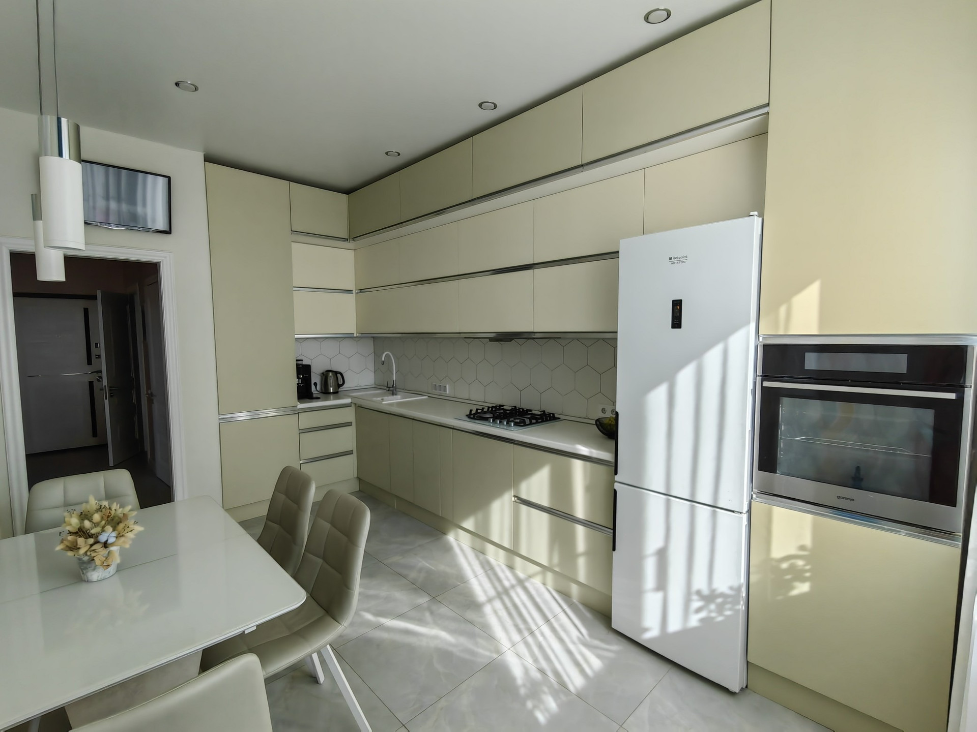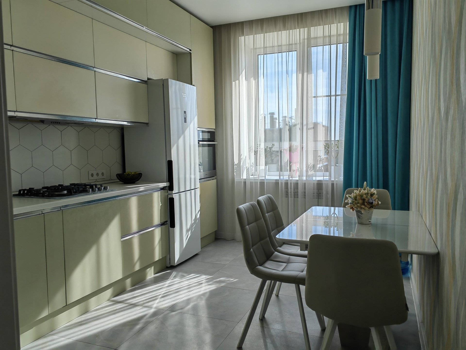 Площадь кухни 13.3 м2. Кухня полностью оснащена доводчиками и качественной фурнитурой BOYARD.