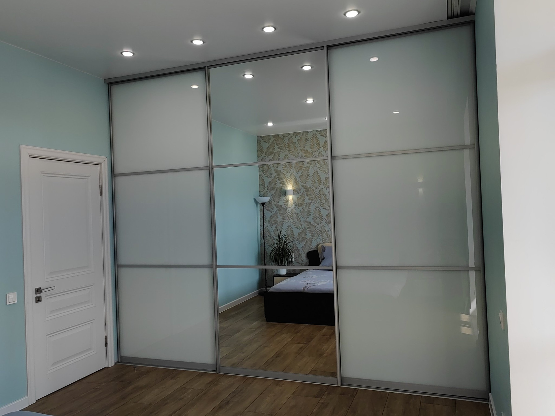 В спальне большой и вместительный шкаф-купе.