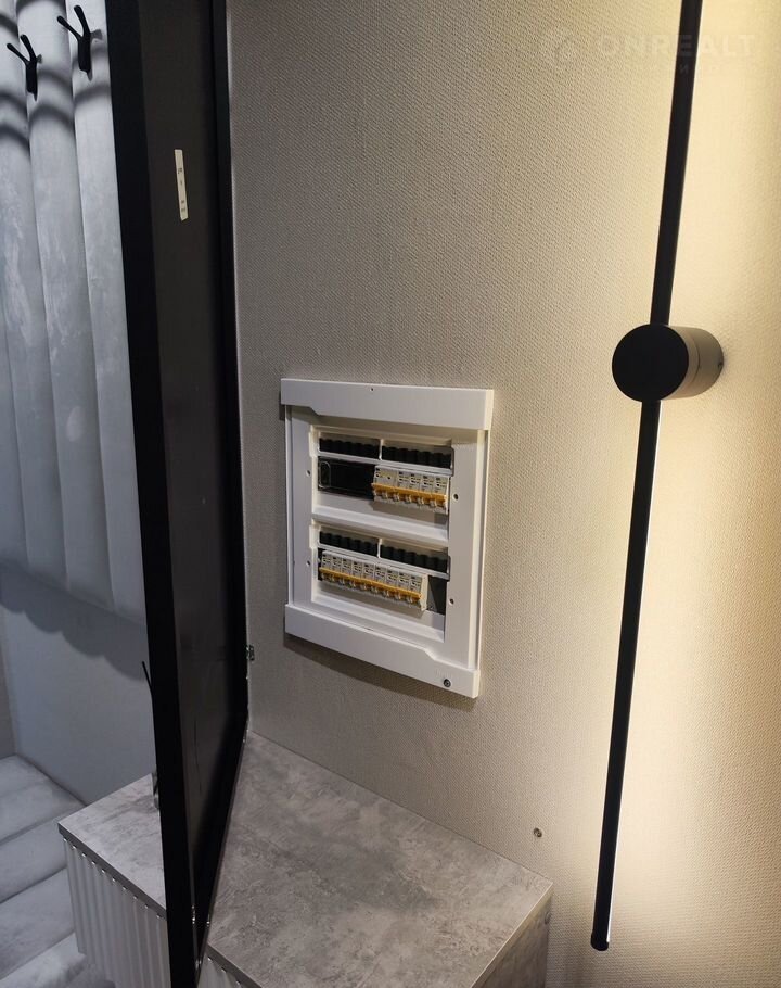 Новая проводка по всей квартире и от счетчика до подъездного щитка, счетчик и автоматы находятся за зеркалом в прихожей, не портя общий вид;