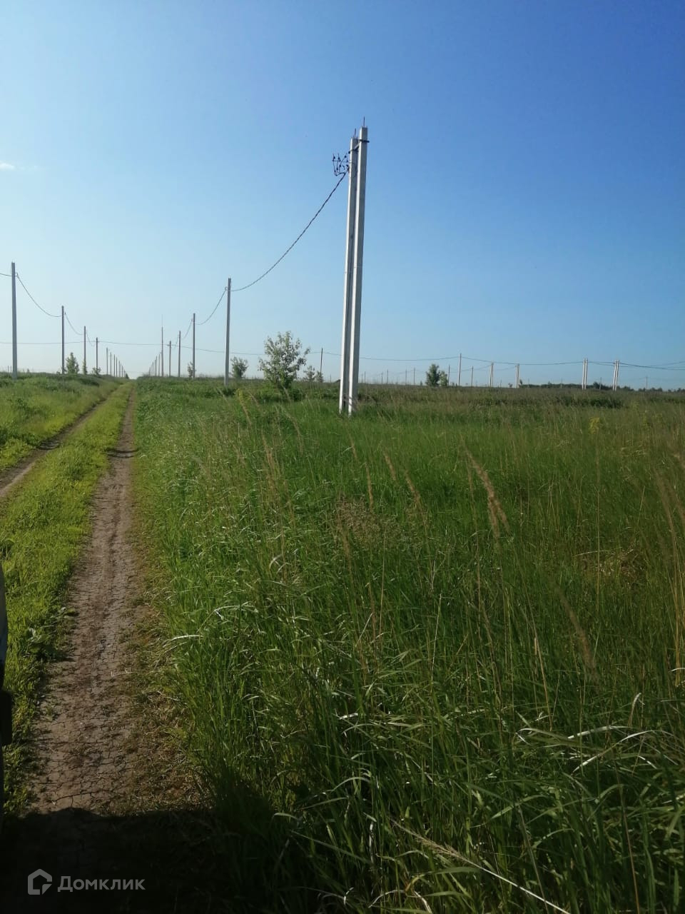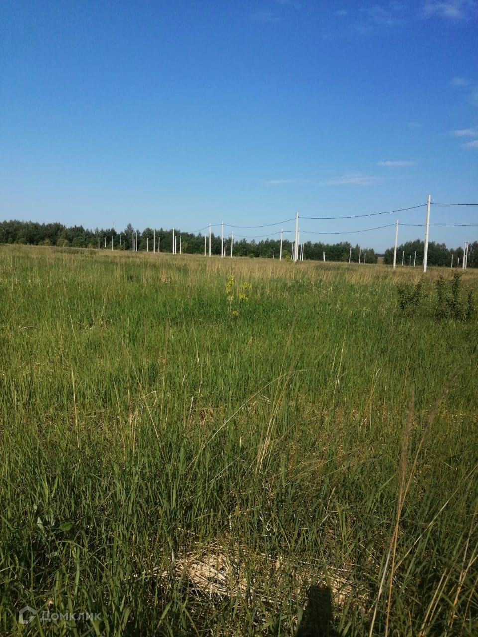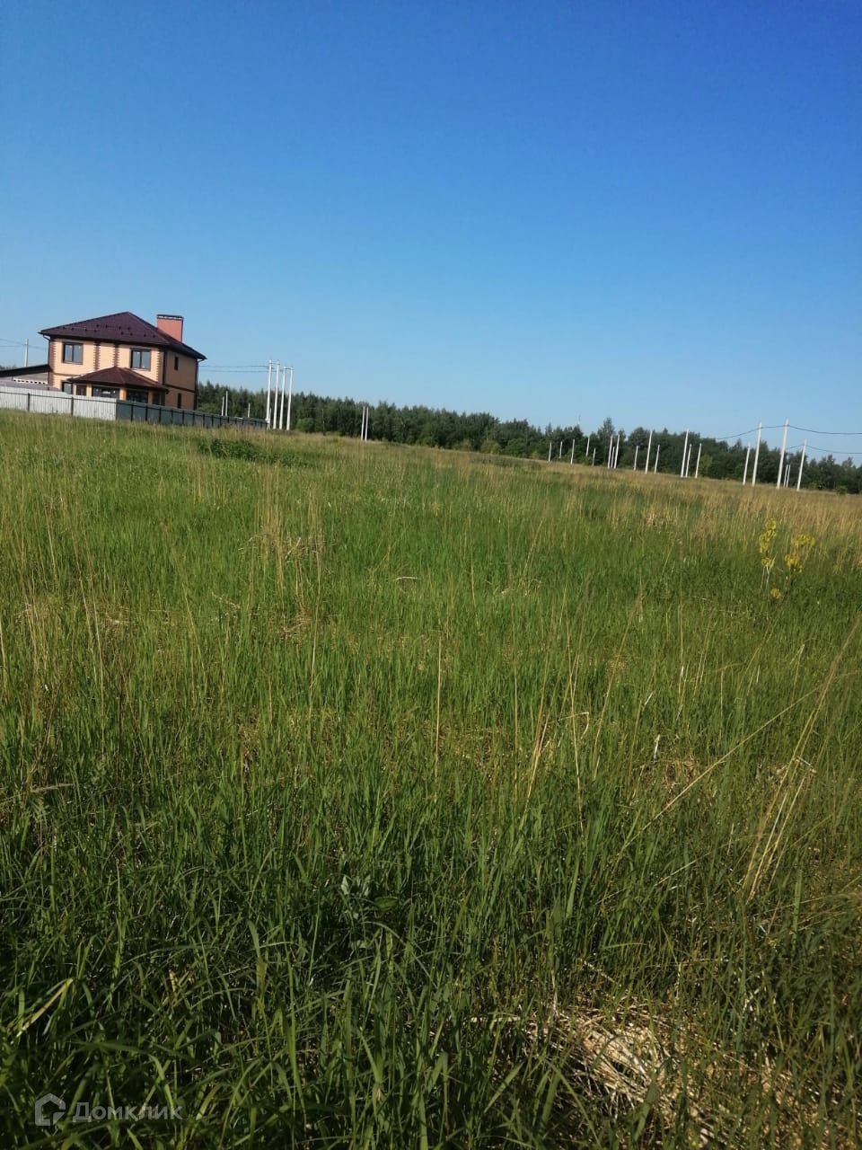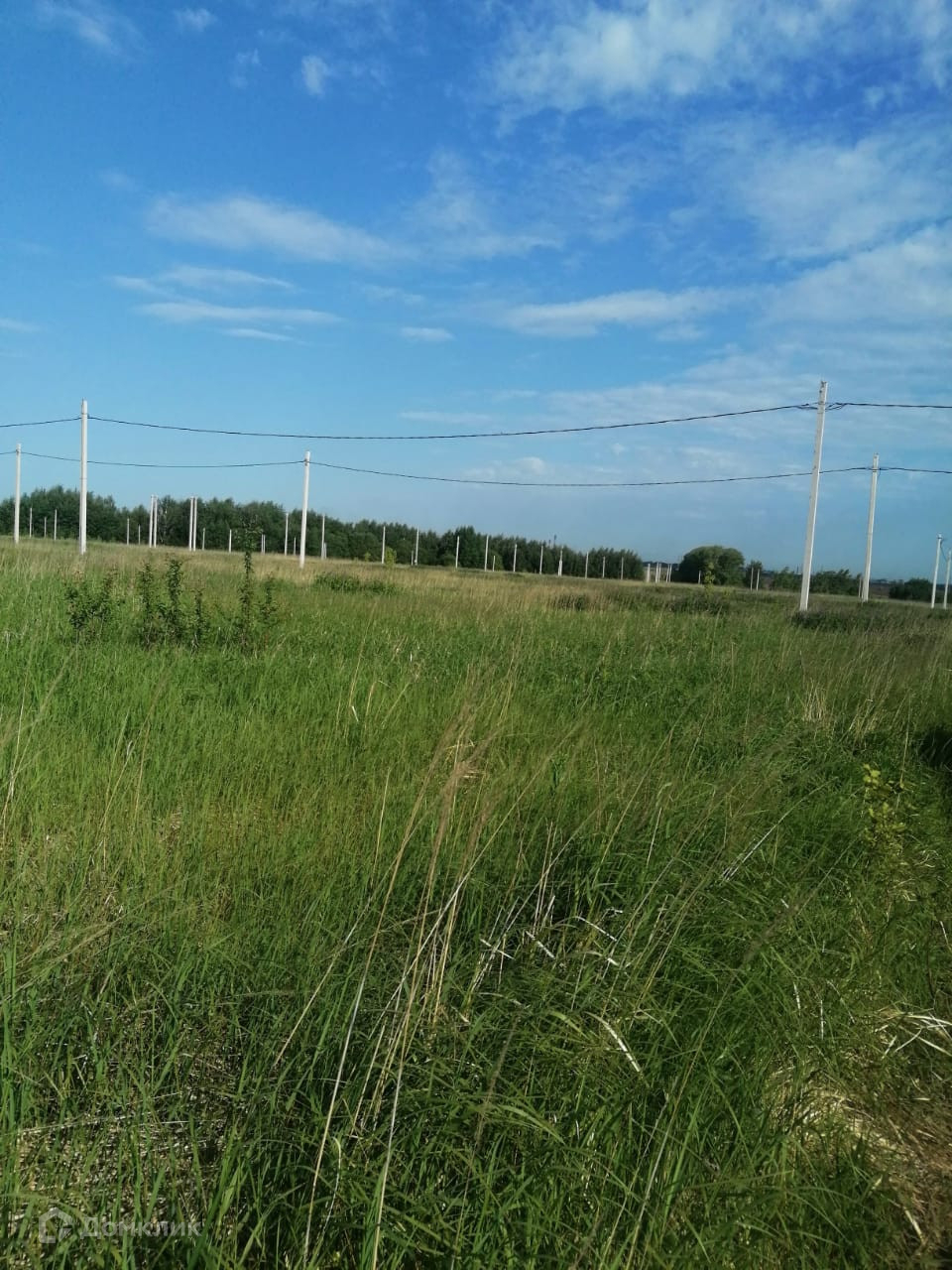 Вдоль участка столбы электропередач.