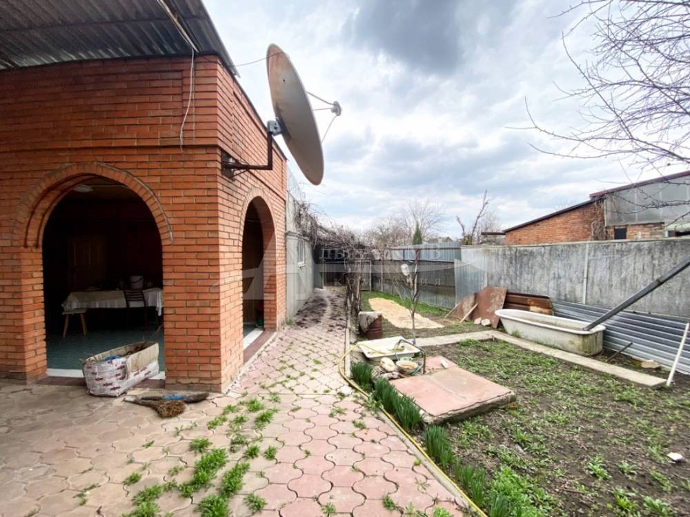 Во дворе организована капитальная зона летнего отдыха из красного кирпича, мангальная зона, есть навес.