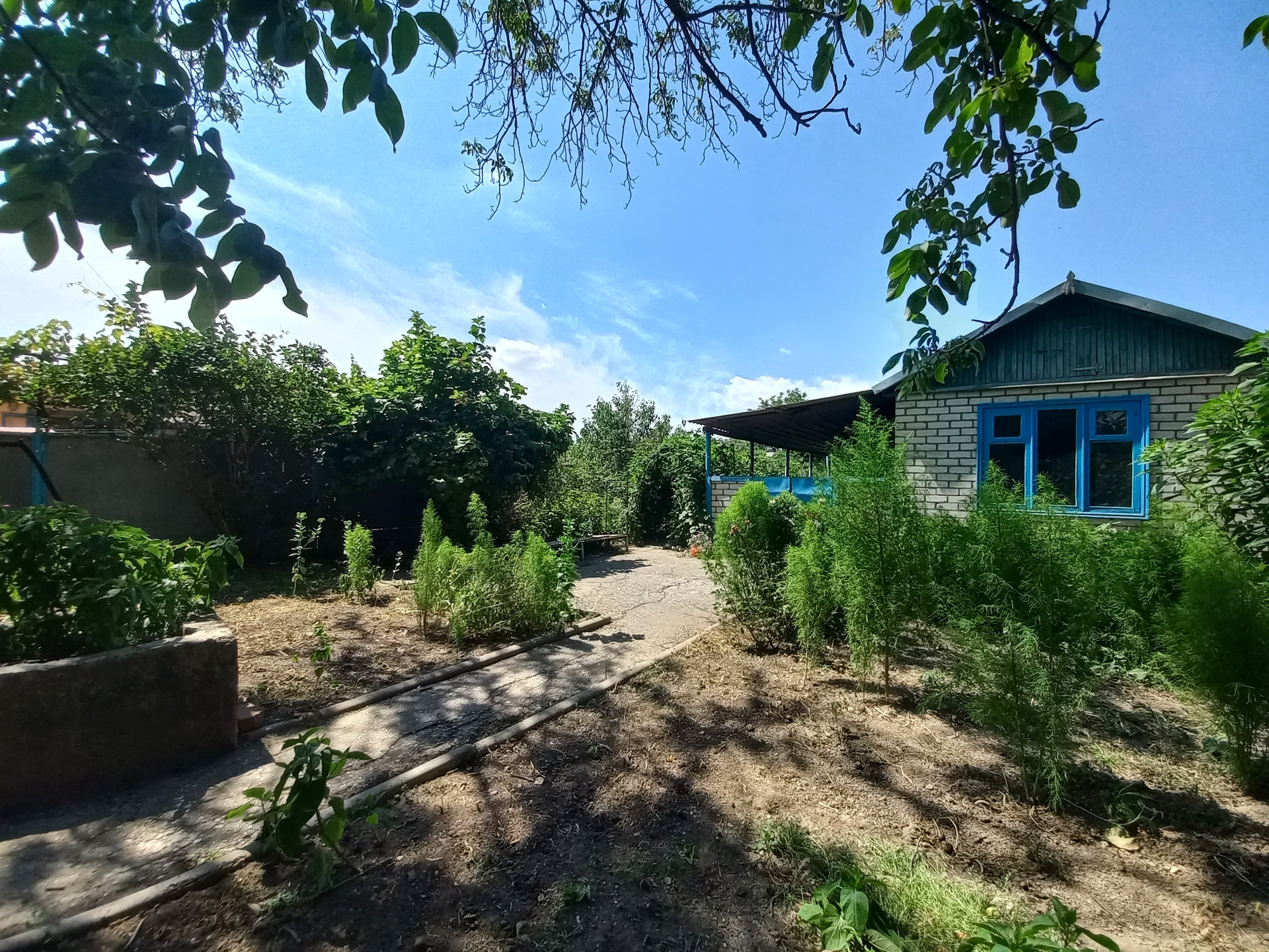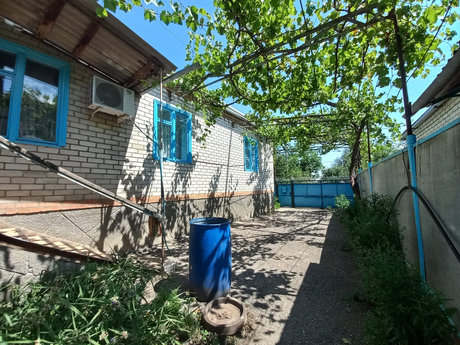 Двор заасфальтирован, накрыт виноградной беседкой. На заднем дворе имеются капитальные хоз. постройки, летняя кухня и баня. Ухоженный огород, плодоносящие деревья и кустарники.