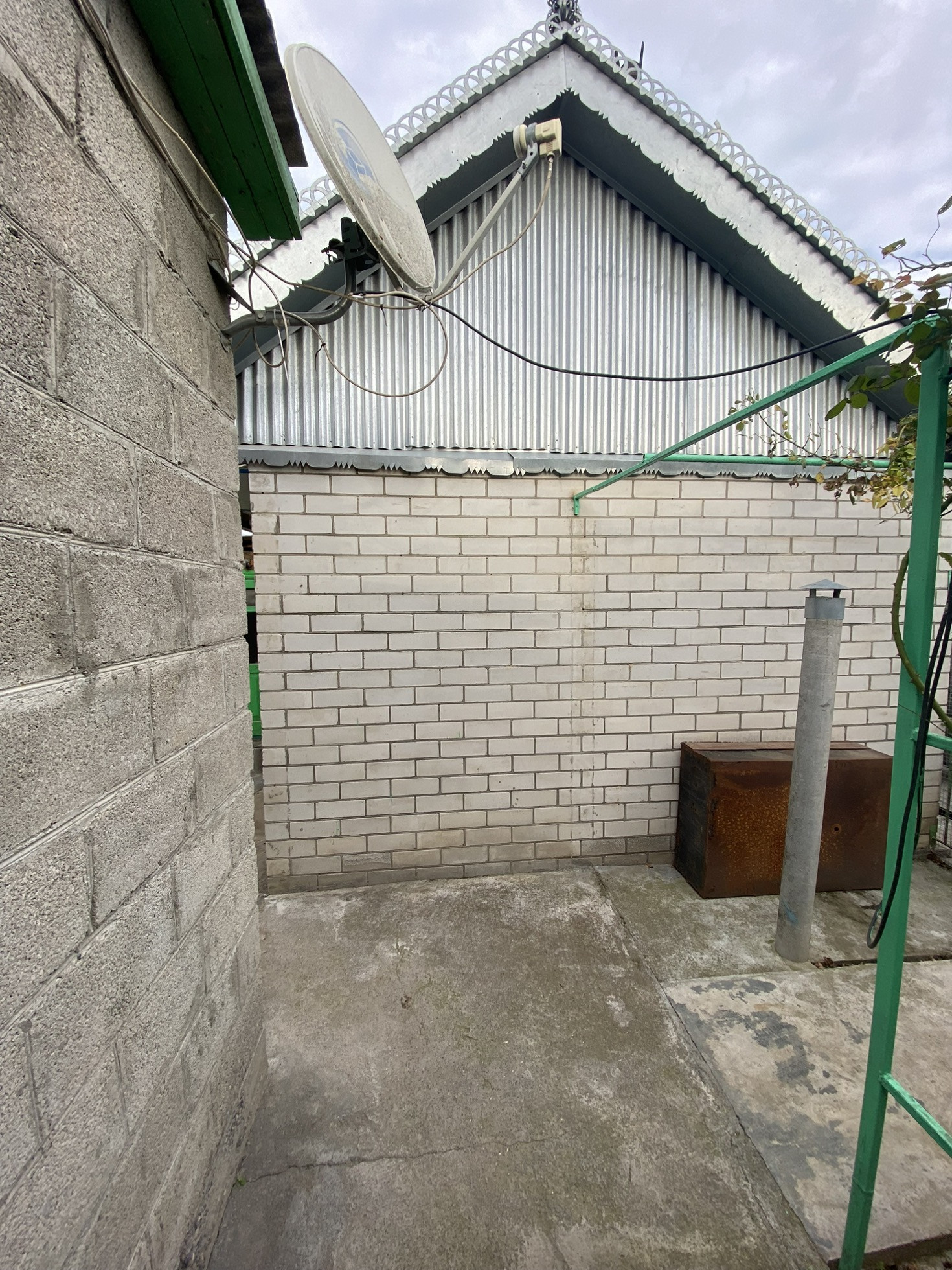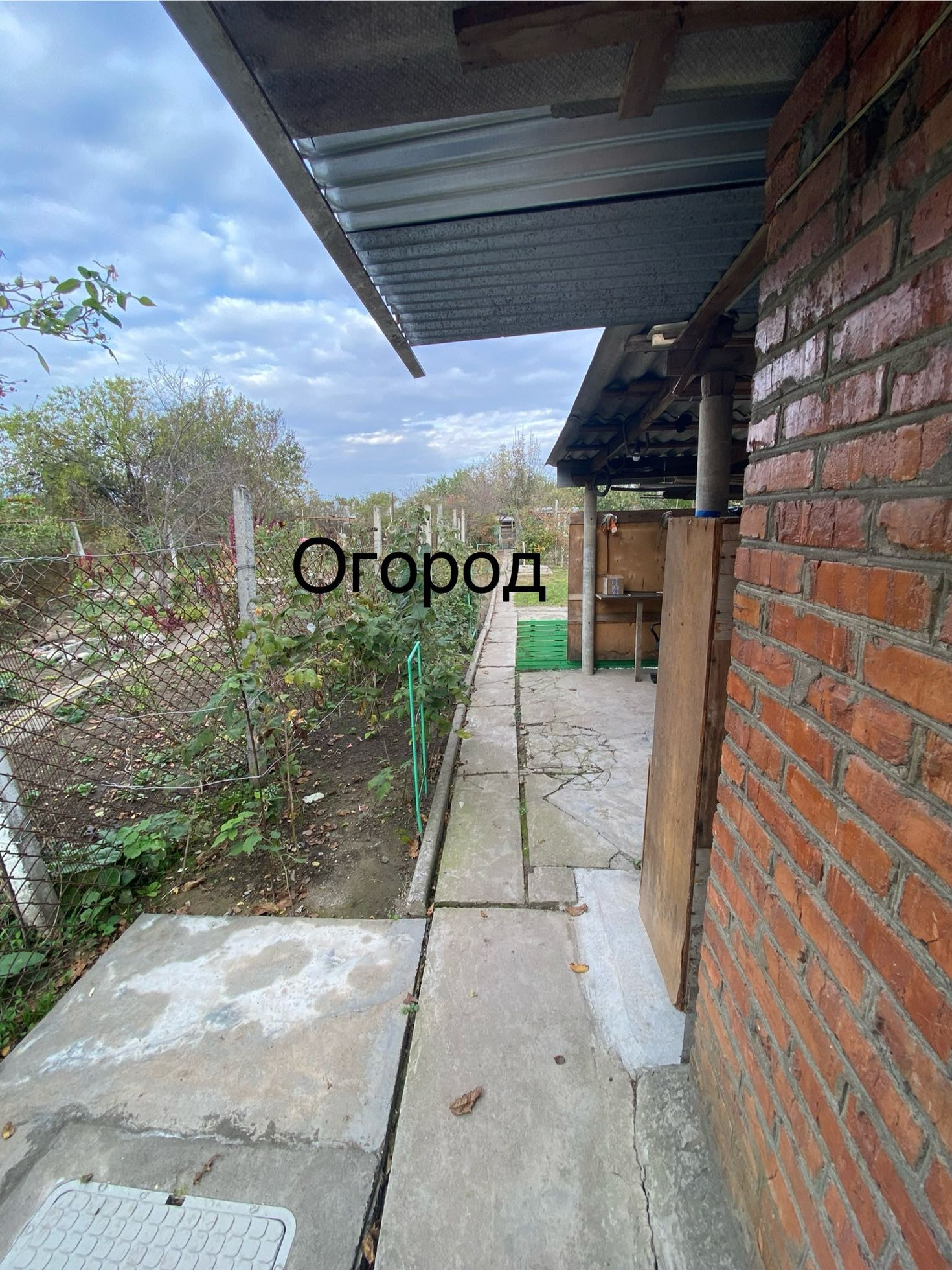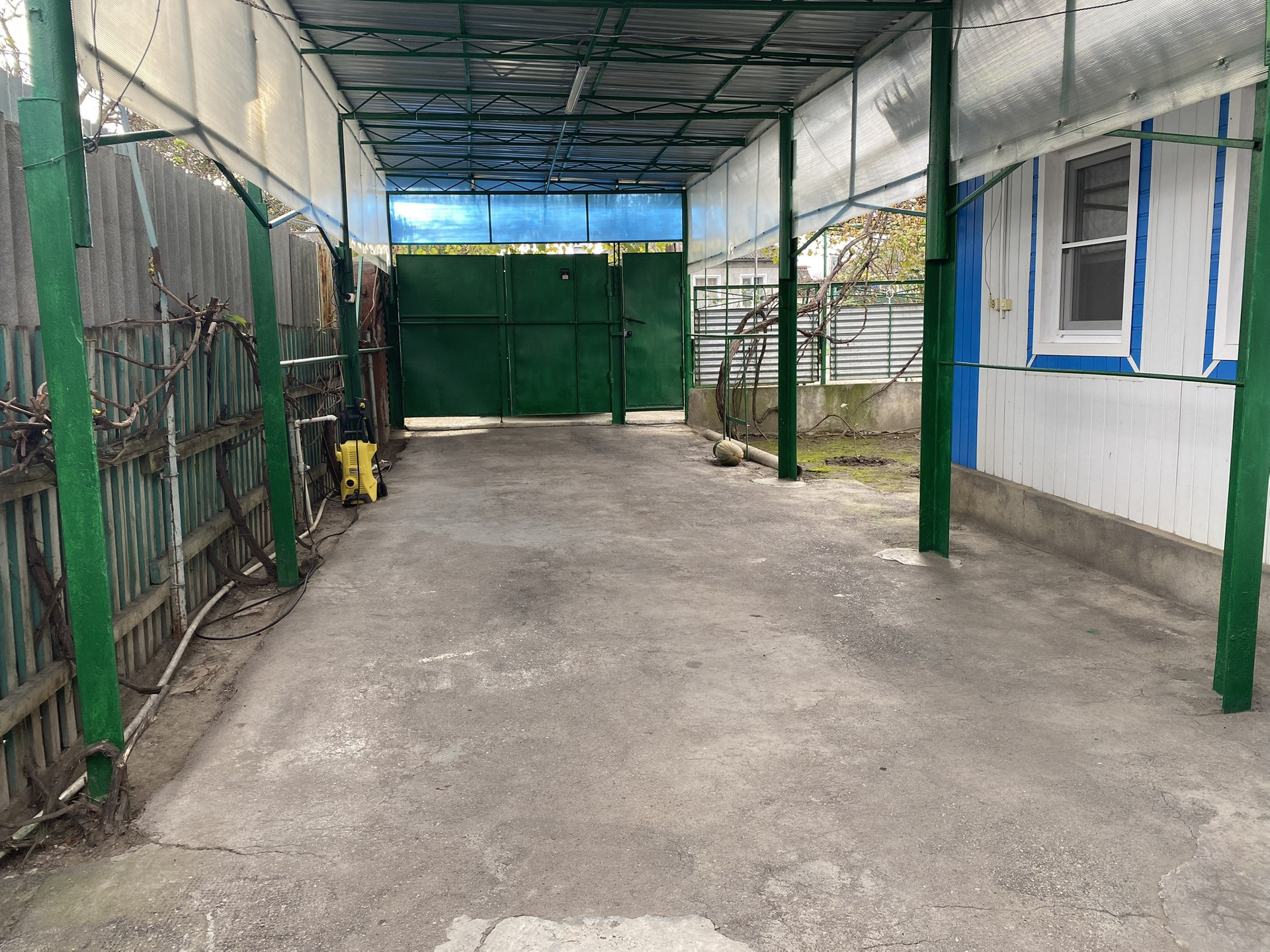Двор забетонирован и уложен тротуарной плиткой.  Два больших навеса. Виноградные беседки. Ухоженный огород, и  хоз.постройки.