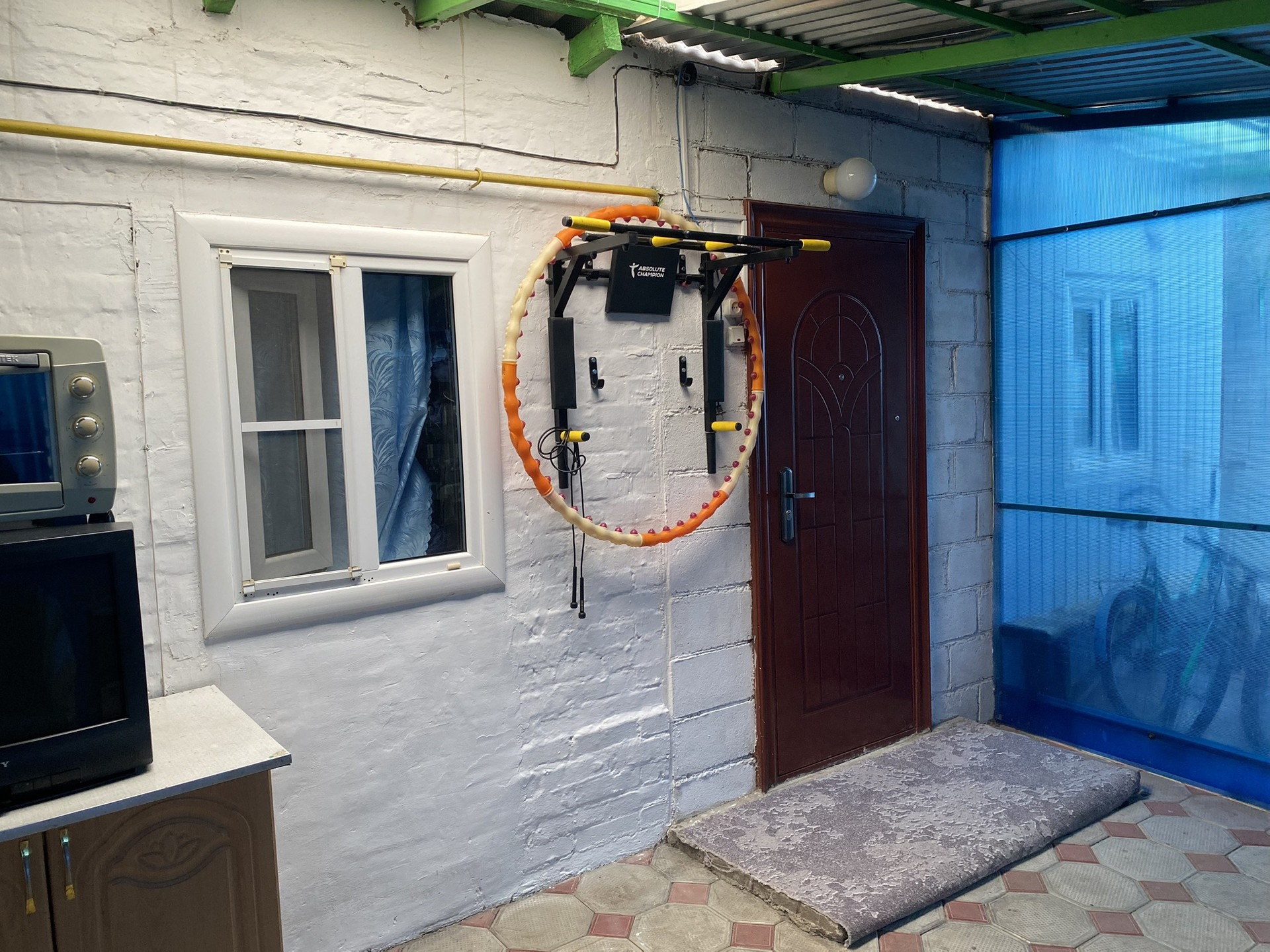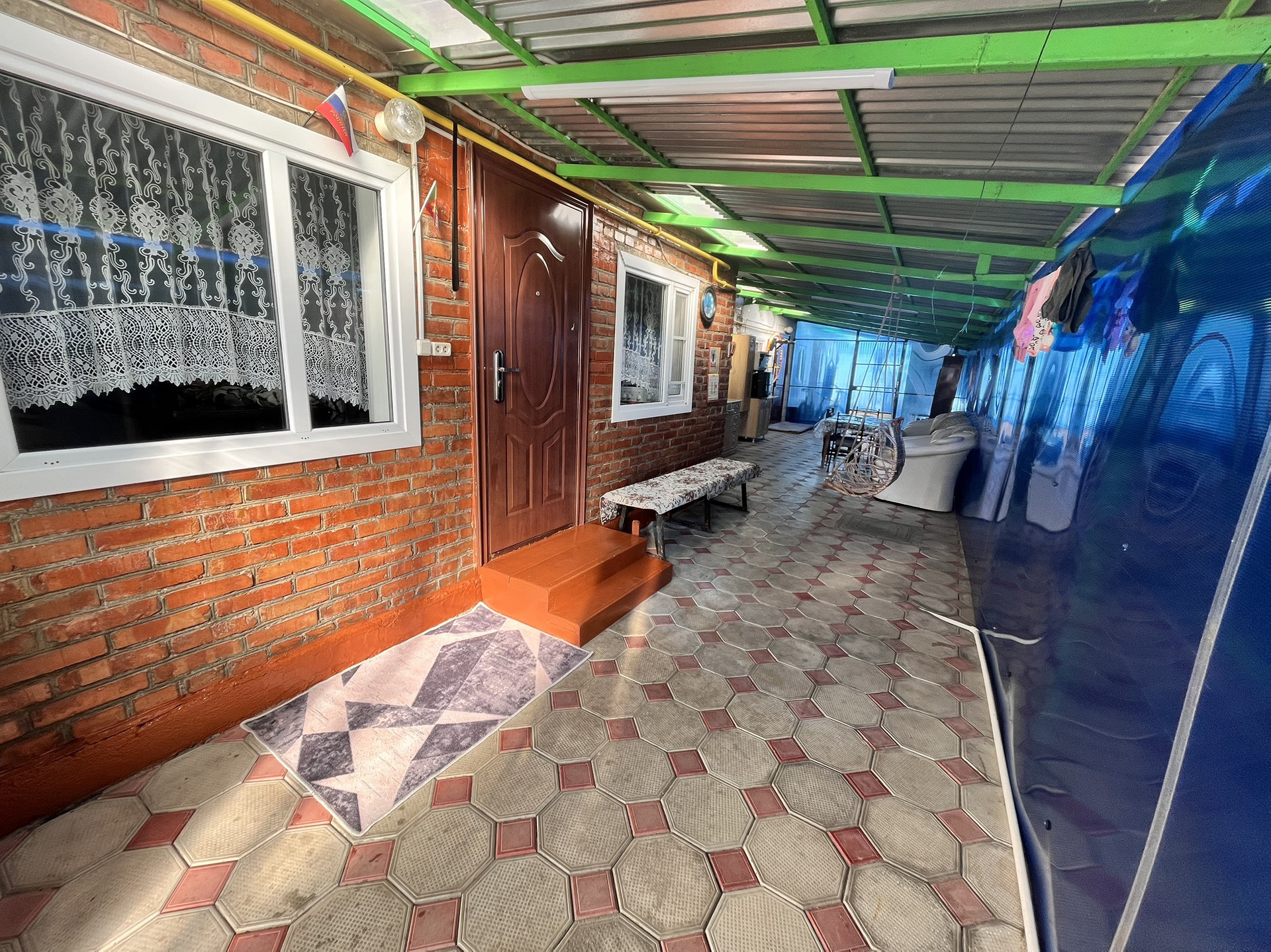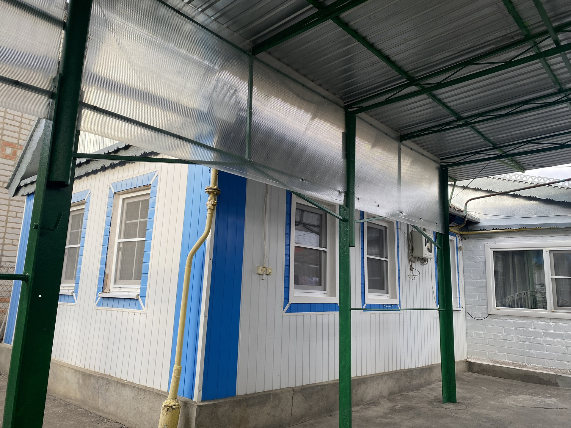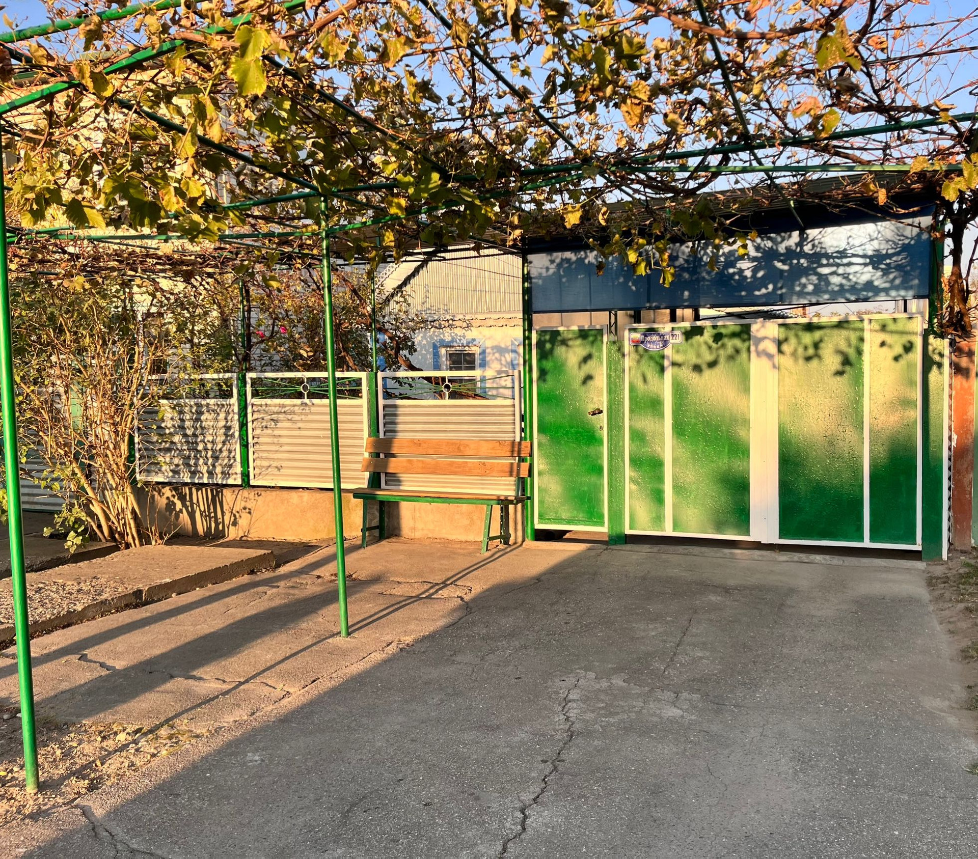 Двор забетонирован и уложен тротуарной плиткой.  Два больших навеса. Виноградные беседки. Ухоженный огород, и  хоз.постройки.