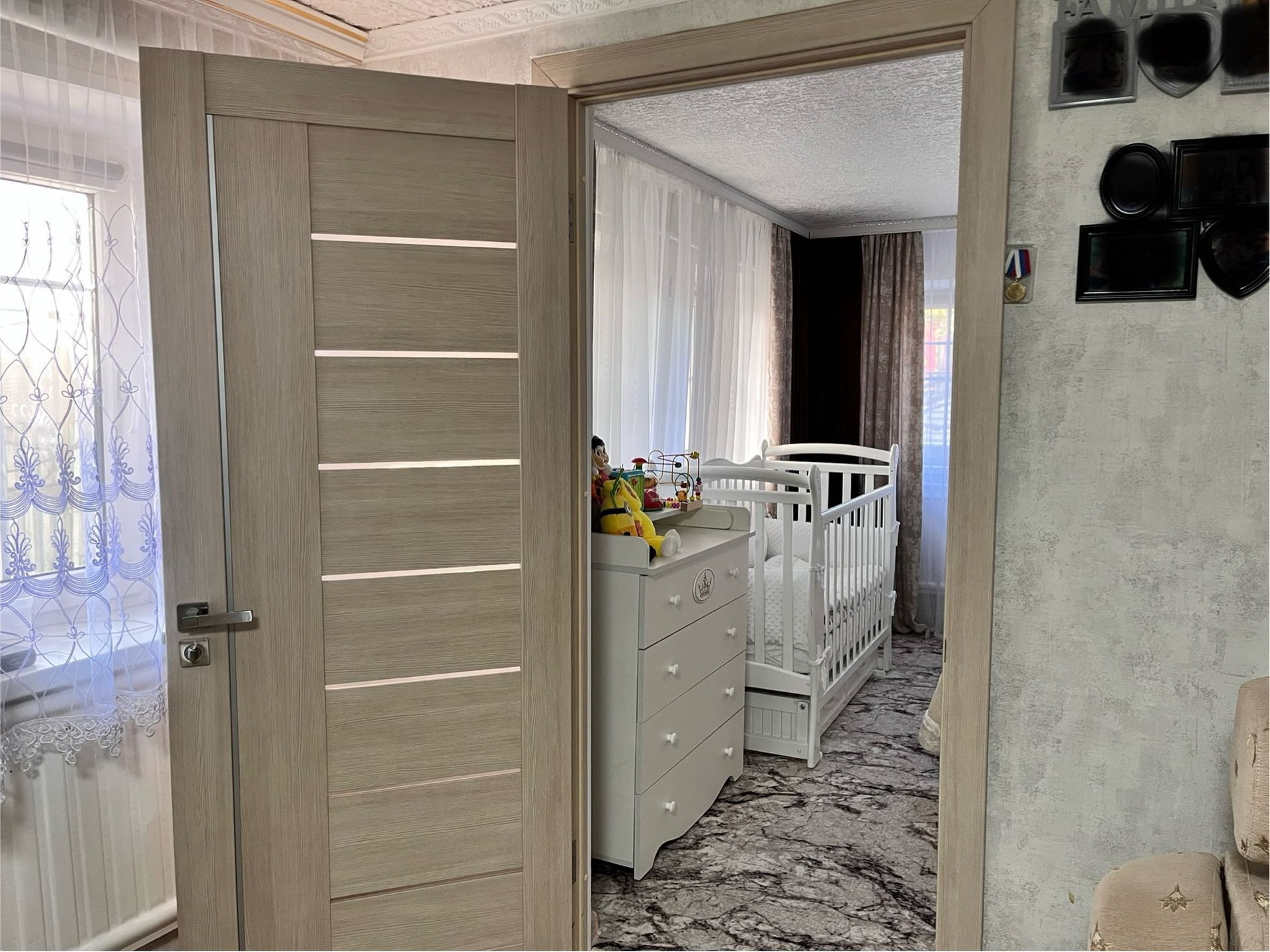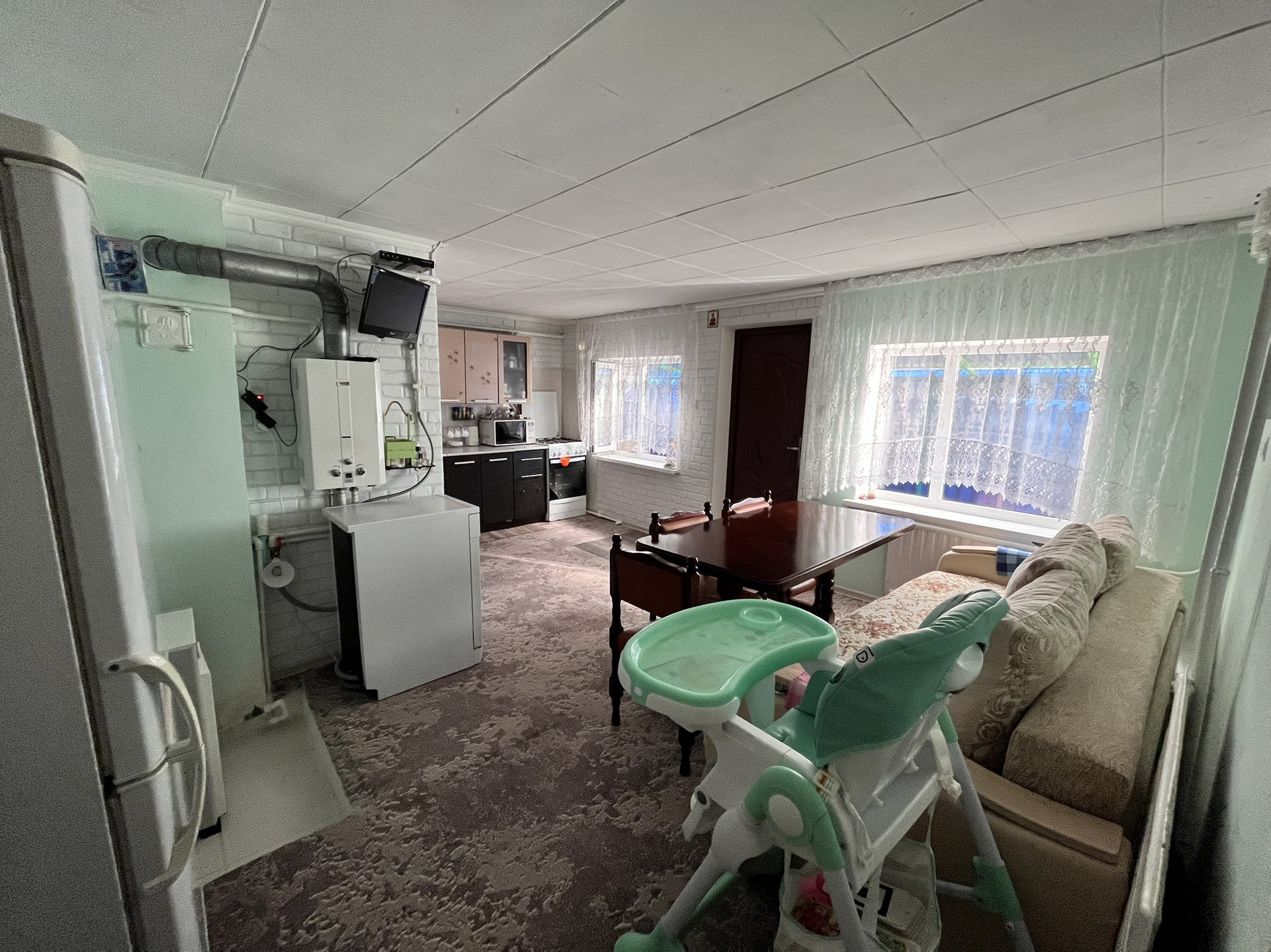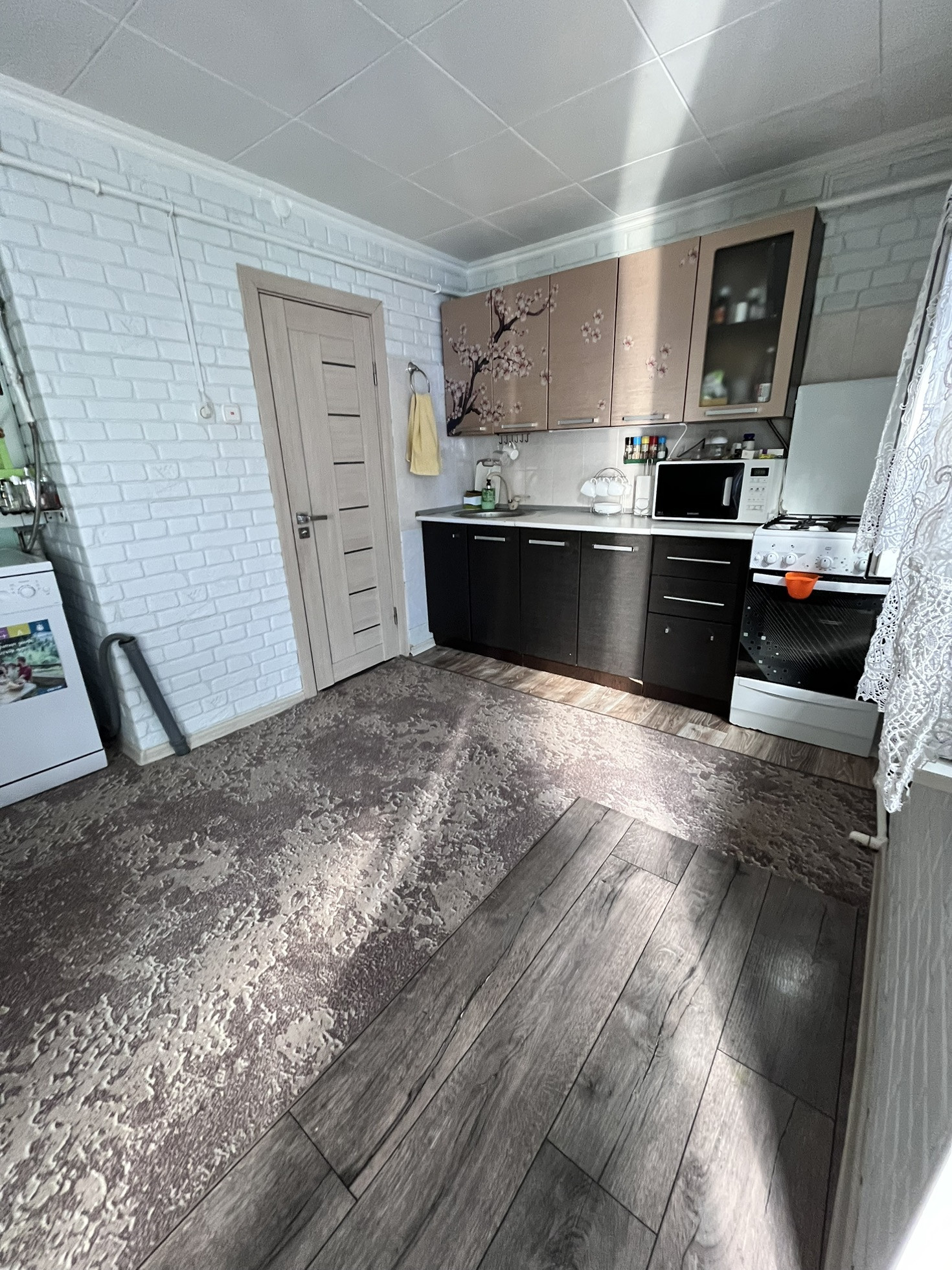 В доме остаются: все напольные покрытия, шторы, кухонный гарнитур!