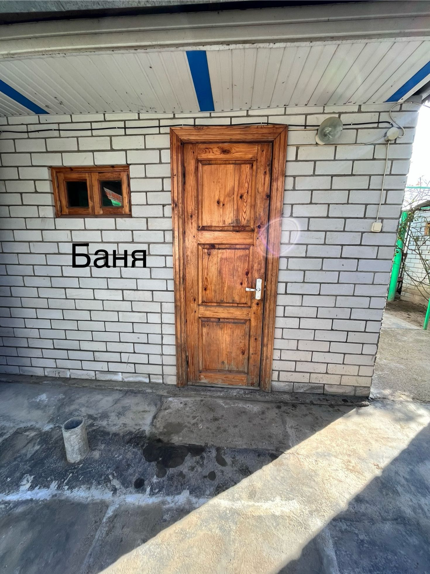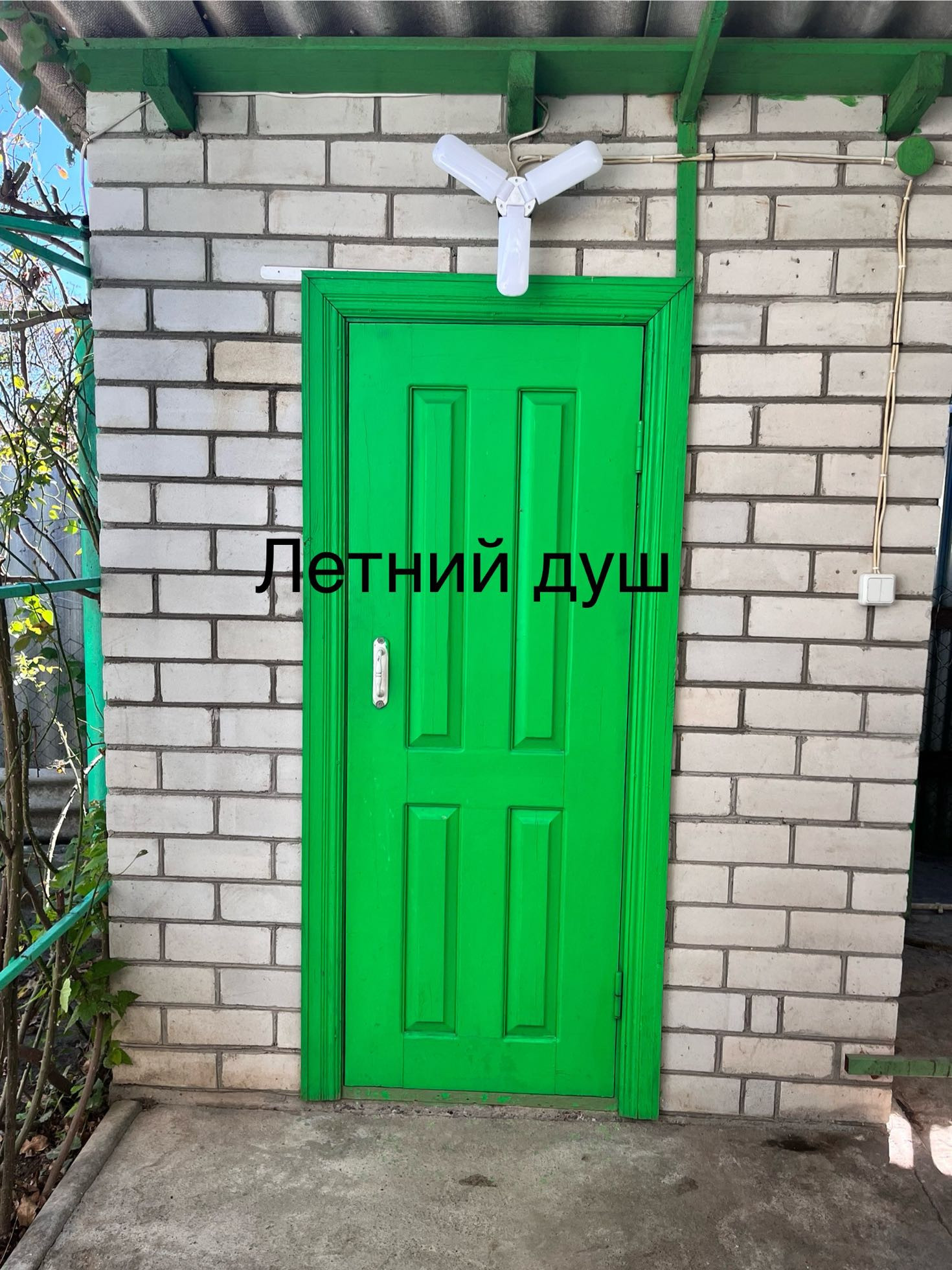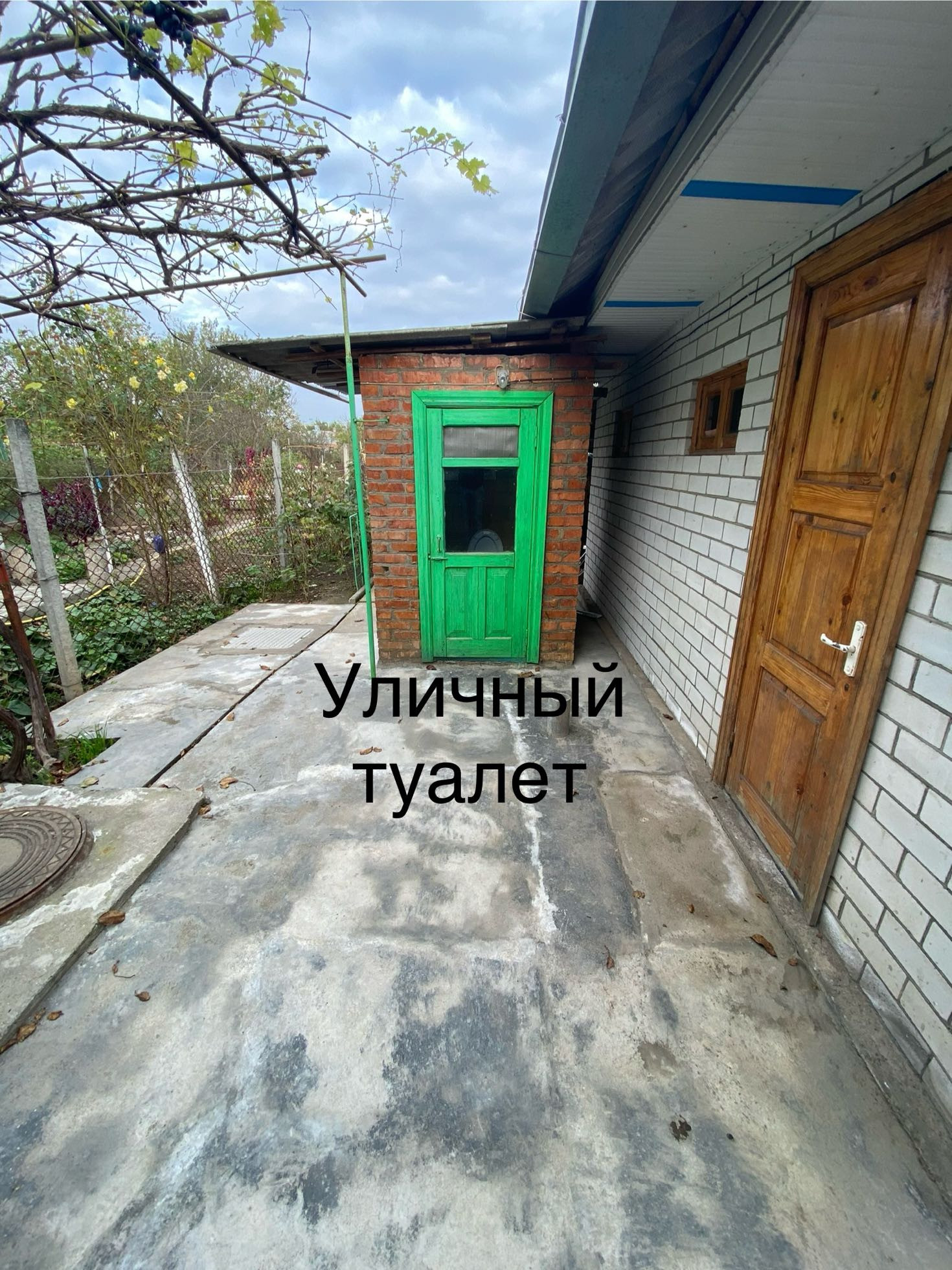 Кирпичный уличный туалет и летний душ (вода подведена).