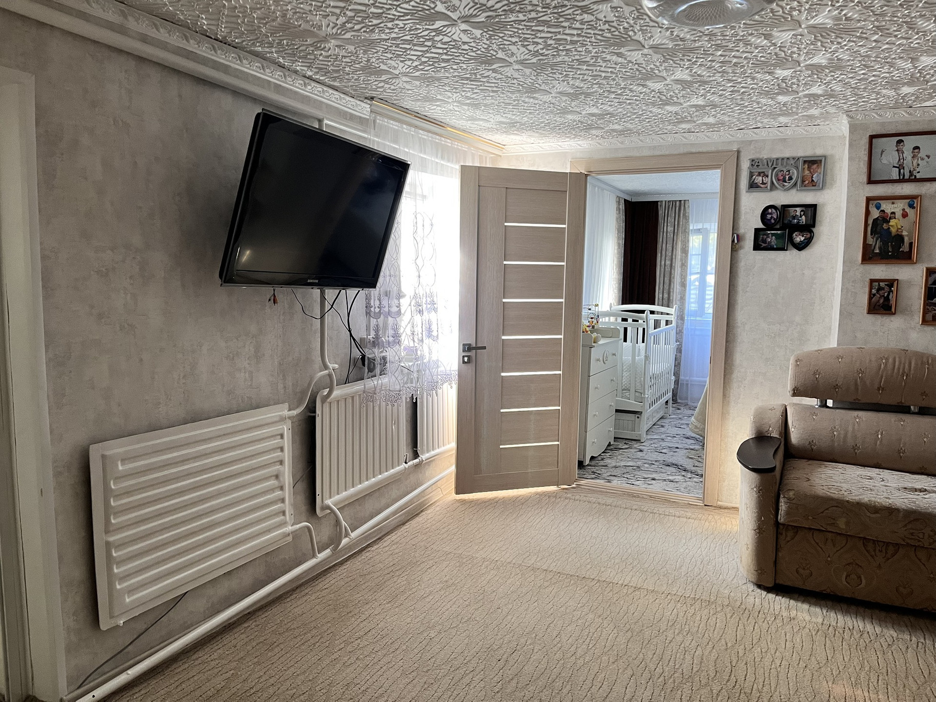 Сделан косметический ремонт. Везде установлены новые межкомнатные двери, пластиковые окна . Отопление котел. Горячая вода от колонки.