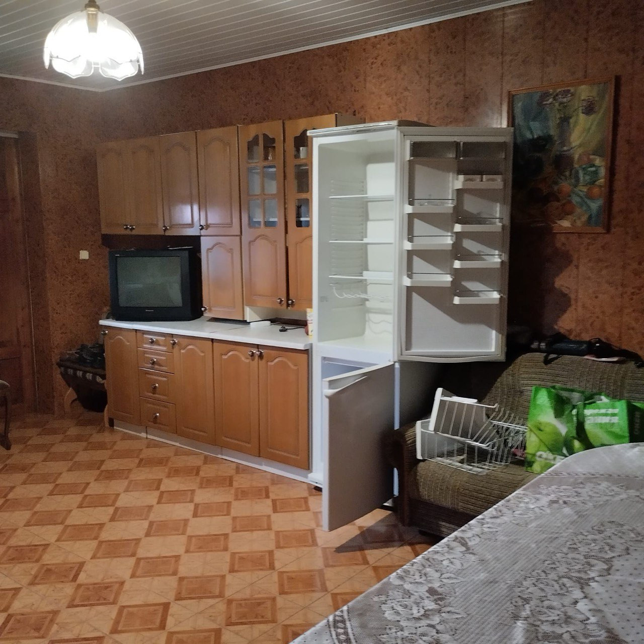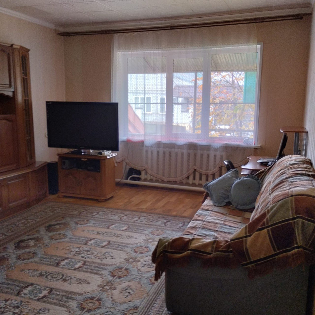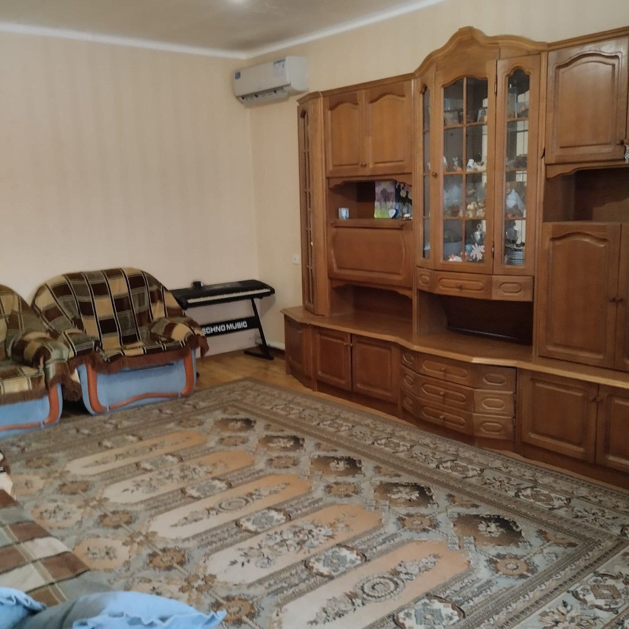 Высокие потолки, пластиковые окна почти во всех комнатах. В зале установлен кондиционер. Плазменный телевизор.
